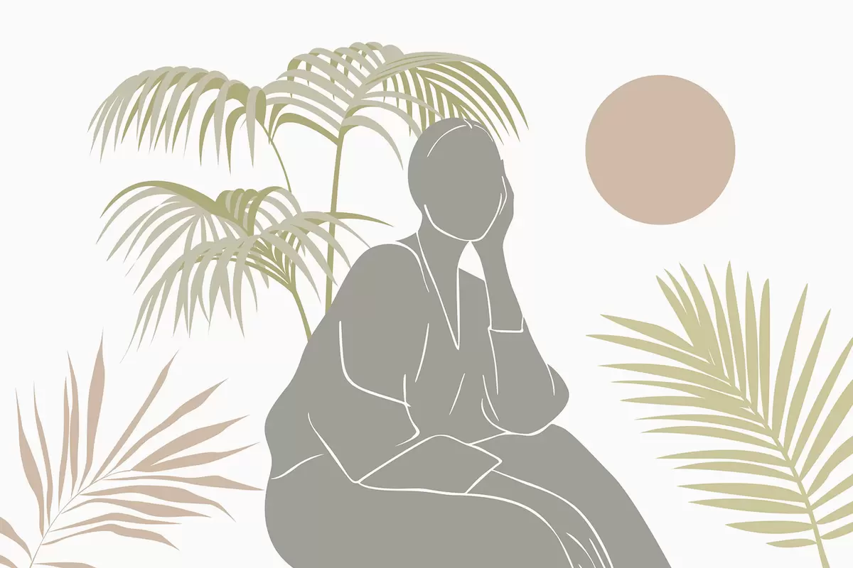 Murais de parede Silhueta de uma mulher e folhas de palmeira Nr. w05190