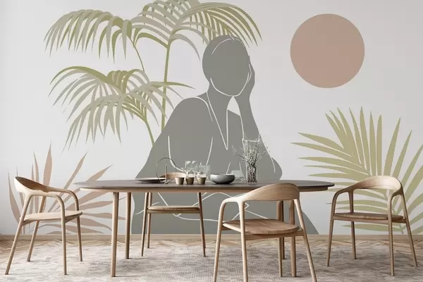 Murais de parede Silhueta de uma mulher e folhas de palmeira Nr. w05190