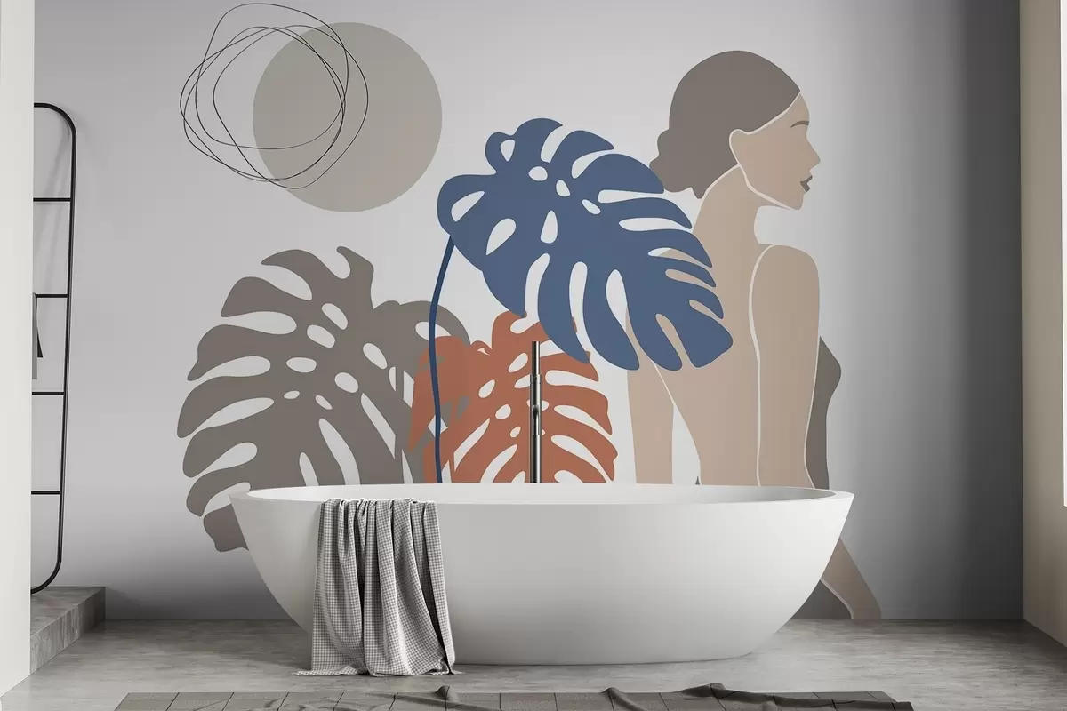 Murais de parede Silhueta de uma mulher perto de folhas tropicais Nr. w05192