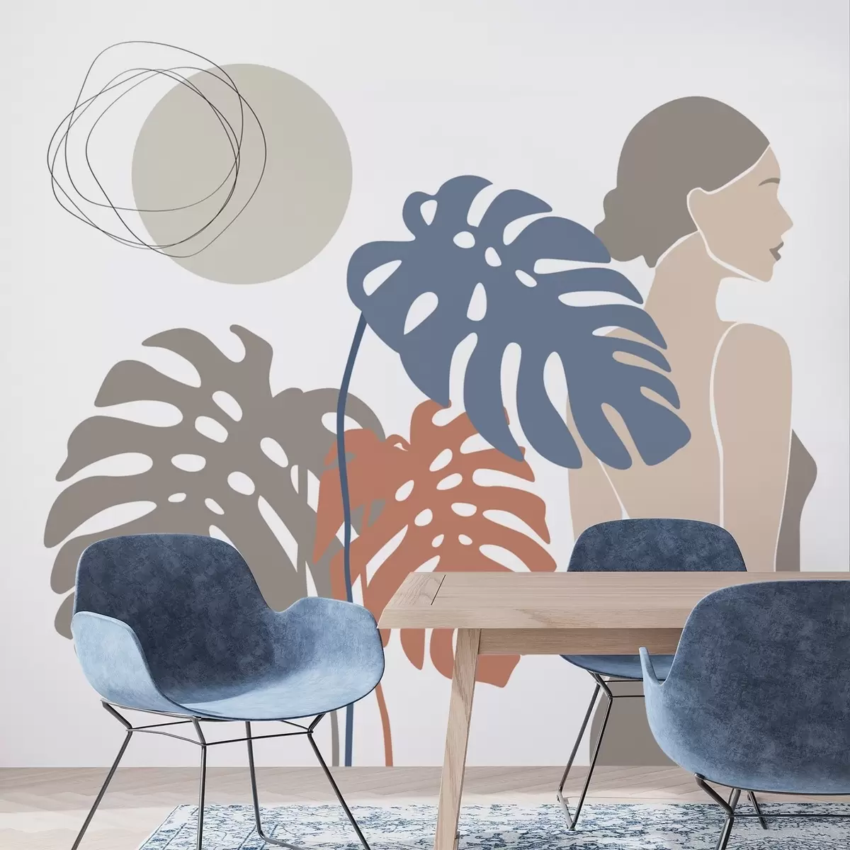 Murais de parede Silhueta de uma mulher perto de folhas tropicais Nr. w05192