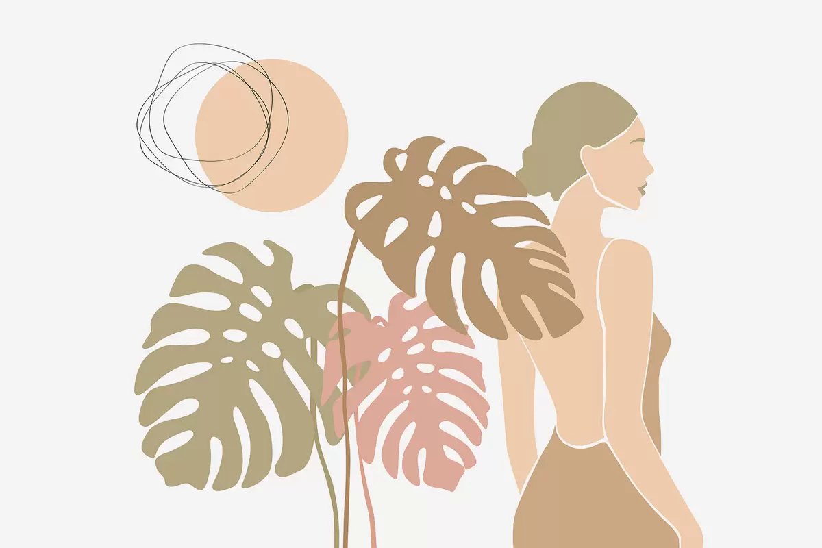 Murais de parede Silhueta de uma mulher perto de folhas tropicais Nr. w05192v1