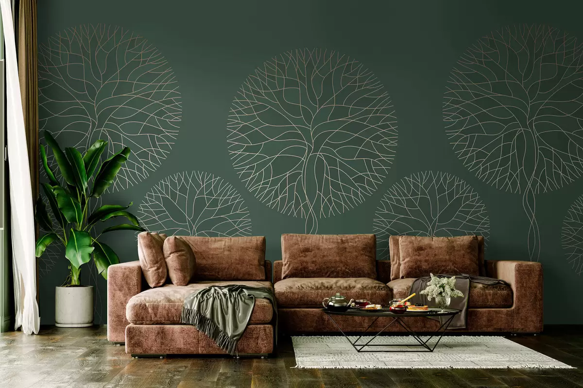 Murais de parede Árvores lineares fantásticas com copas exuberantes em elegantes tons de verde escuro Nr. w05213v2