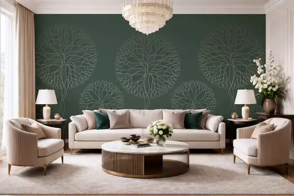 Murais de parede Árvores lineares fantásticas com copas exuberantes em elegantes tons de verde escuro Nr. w05213v2