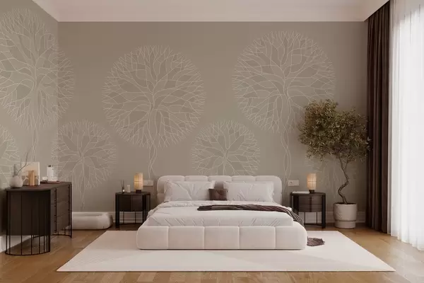 Murais de parede Árvores lineares fantásticas com copas exuberantes em tons de bege Nr. w05213v3