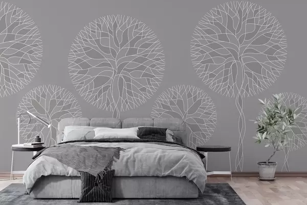 Murais de parede Árvores lineares fantásticas com copas exuberantes em tons de cinza médio Nr. w05213v5