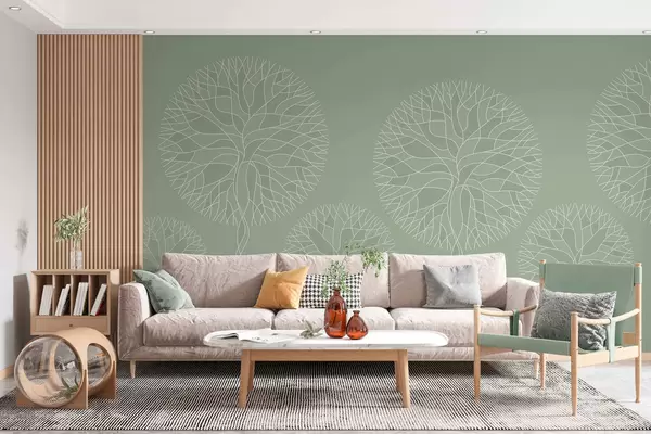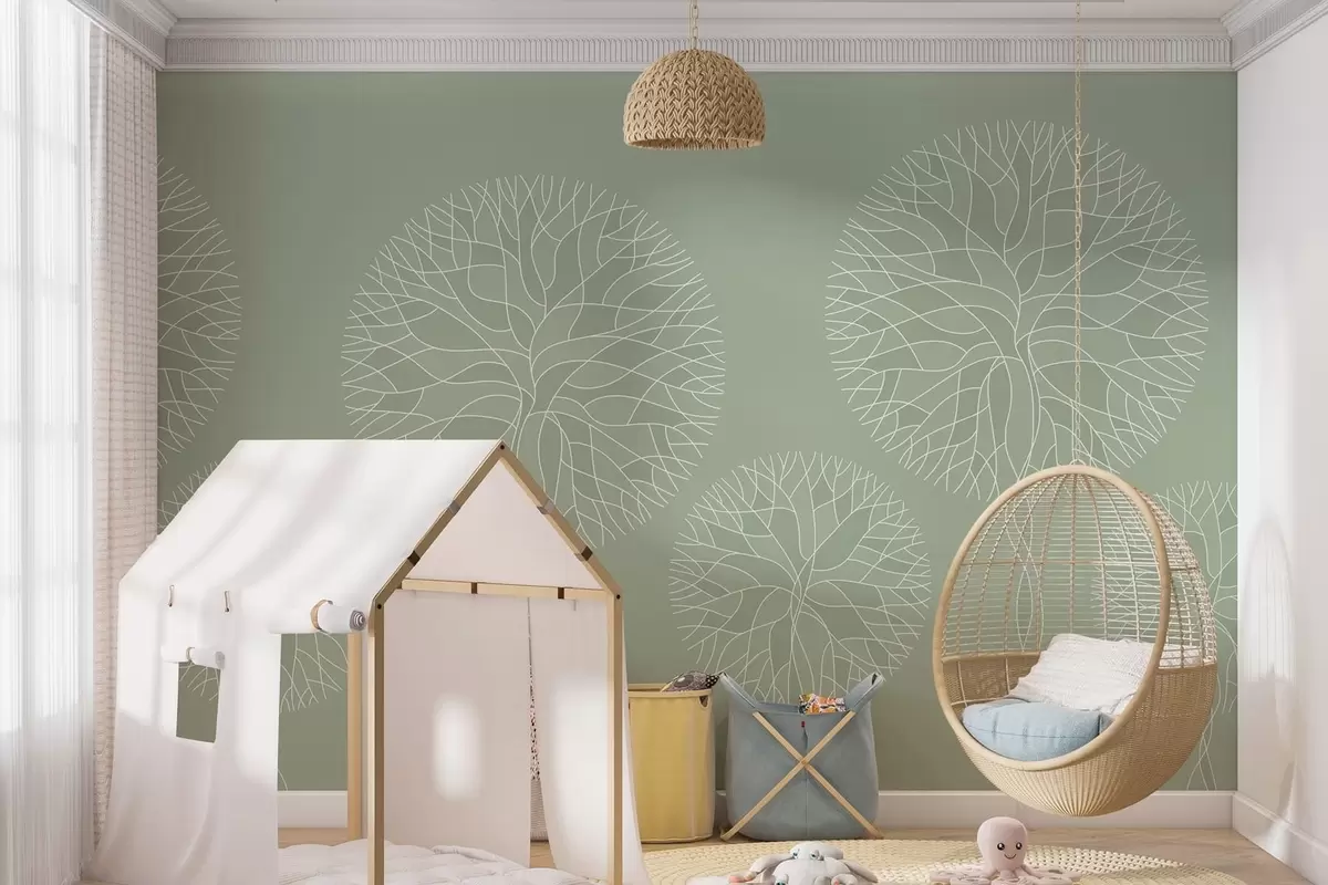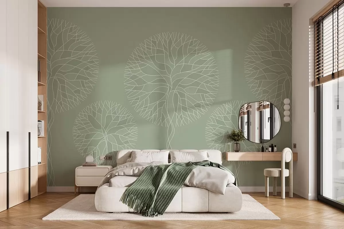 Murais de parede Árvores lineares fantásticas com copas exuberantes em tons de verde claro Nr. w05213v6