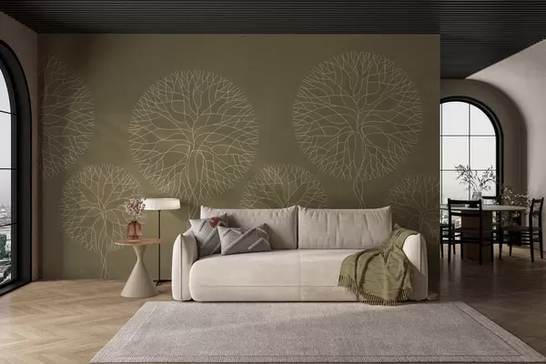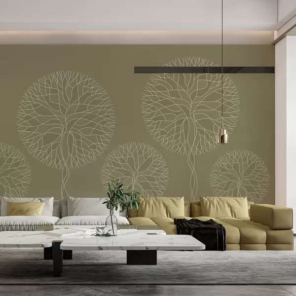 Murais de parede Árvores lineares fantásticas com copas exuberantes em tons cáqui Nr. w05213v7