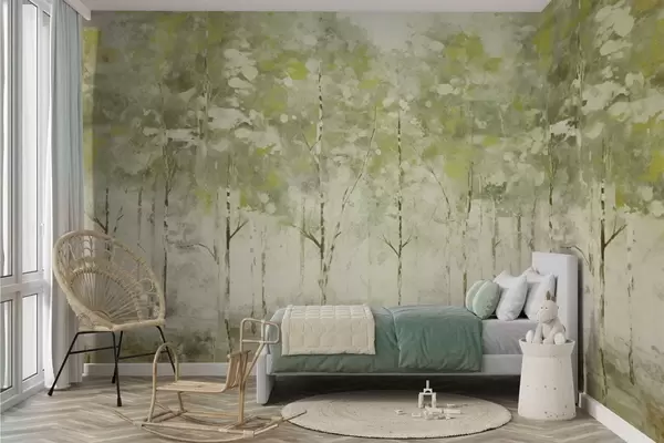 Murais de parede Floresta estilizada com árvores esguias em tons de verde Nr. w05221v1