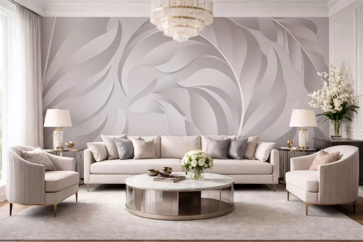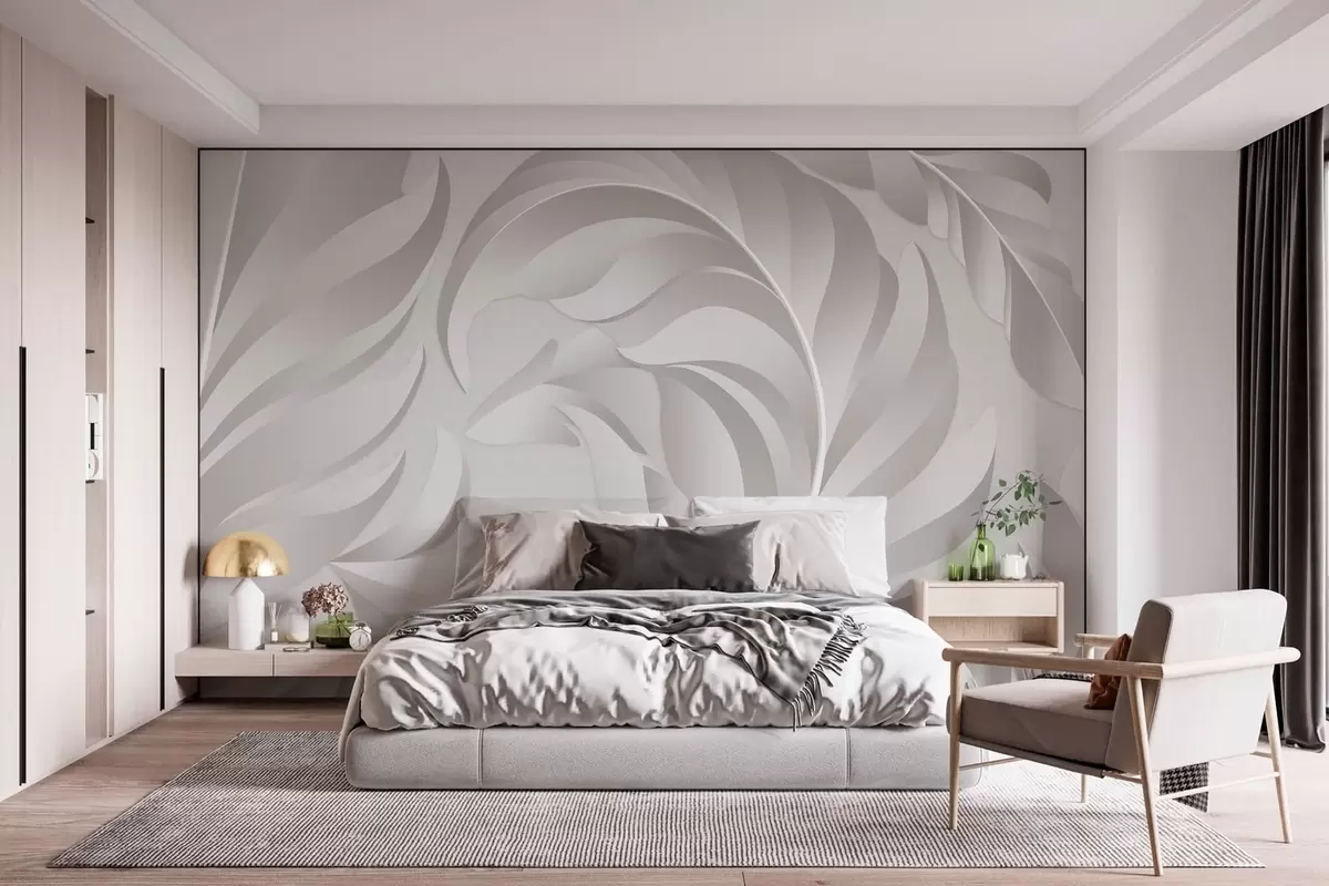 Murais de parede penas grandes e texturizadas em tons perolados Nr. w05231v2