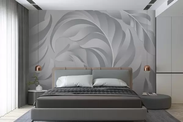 Murais de parede penas grandes e texturizadas em tons de cinza Nr. w05231v3