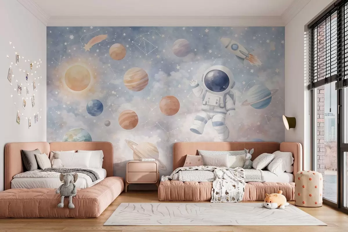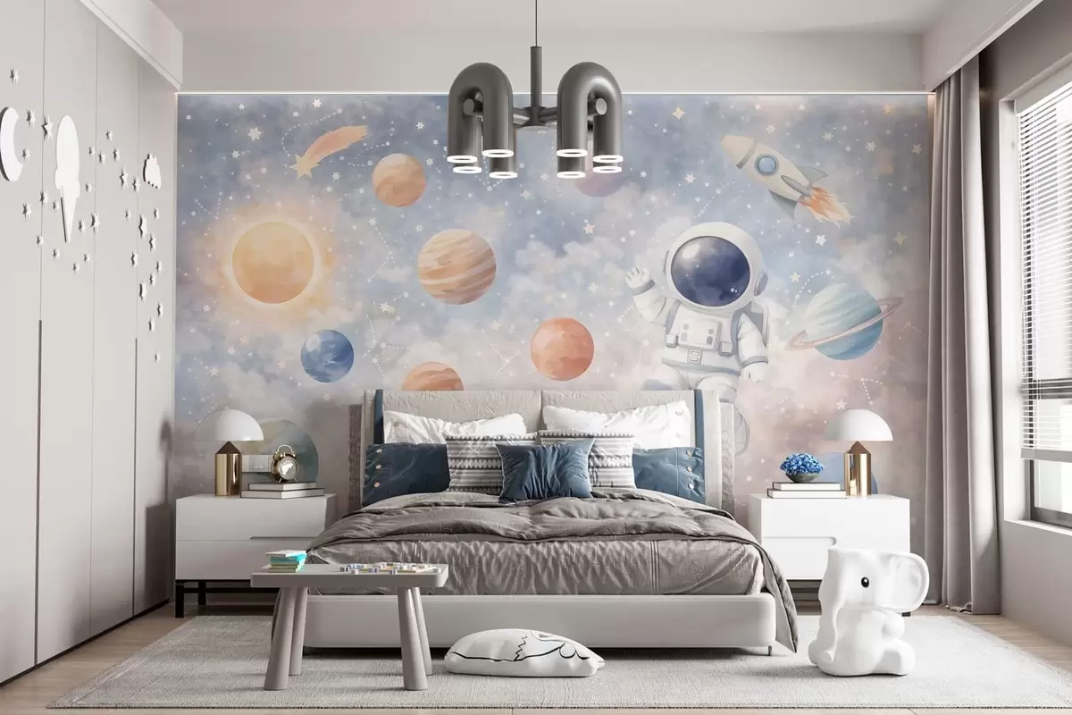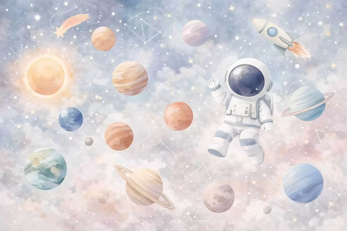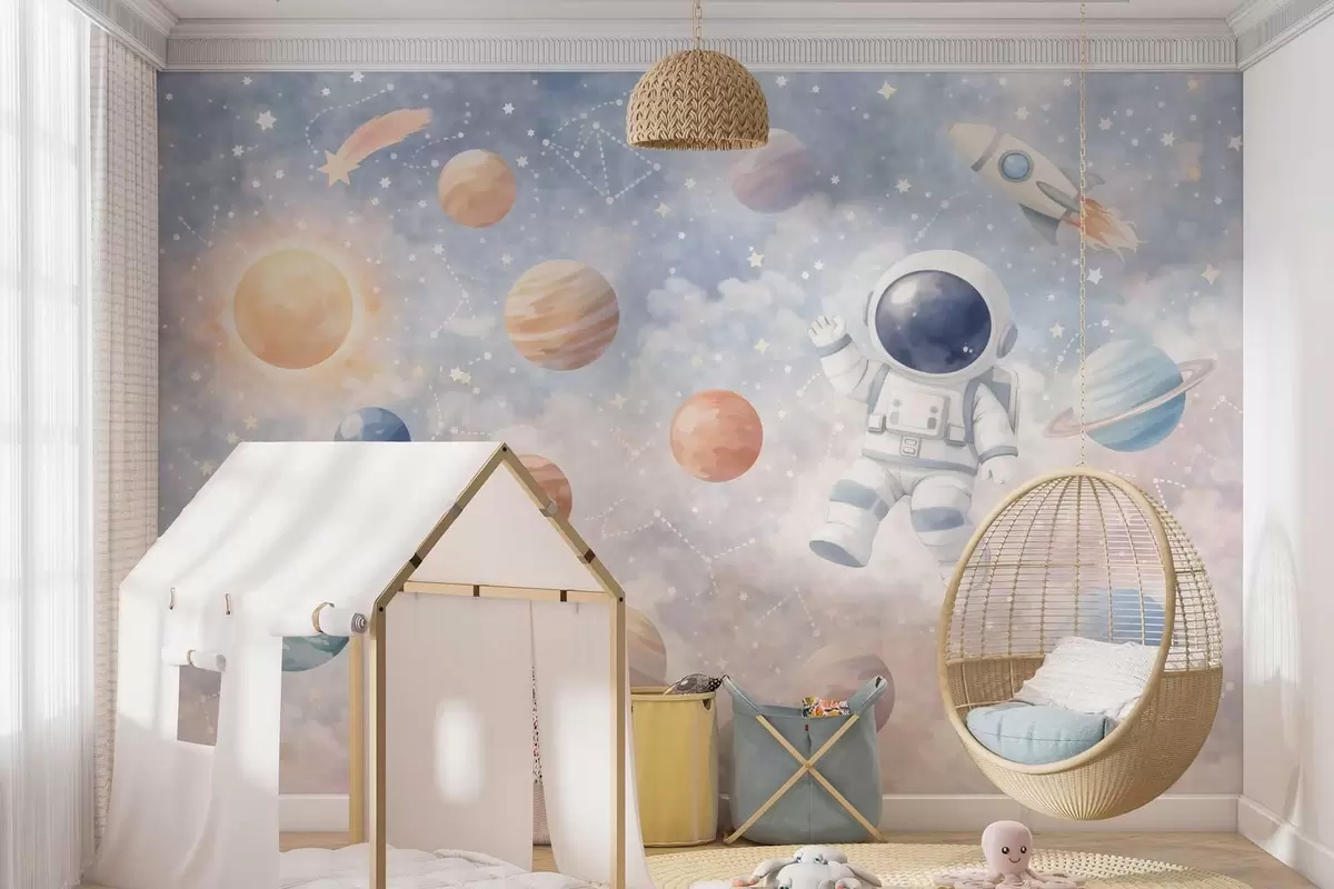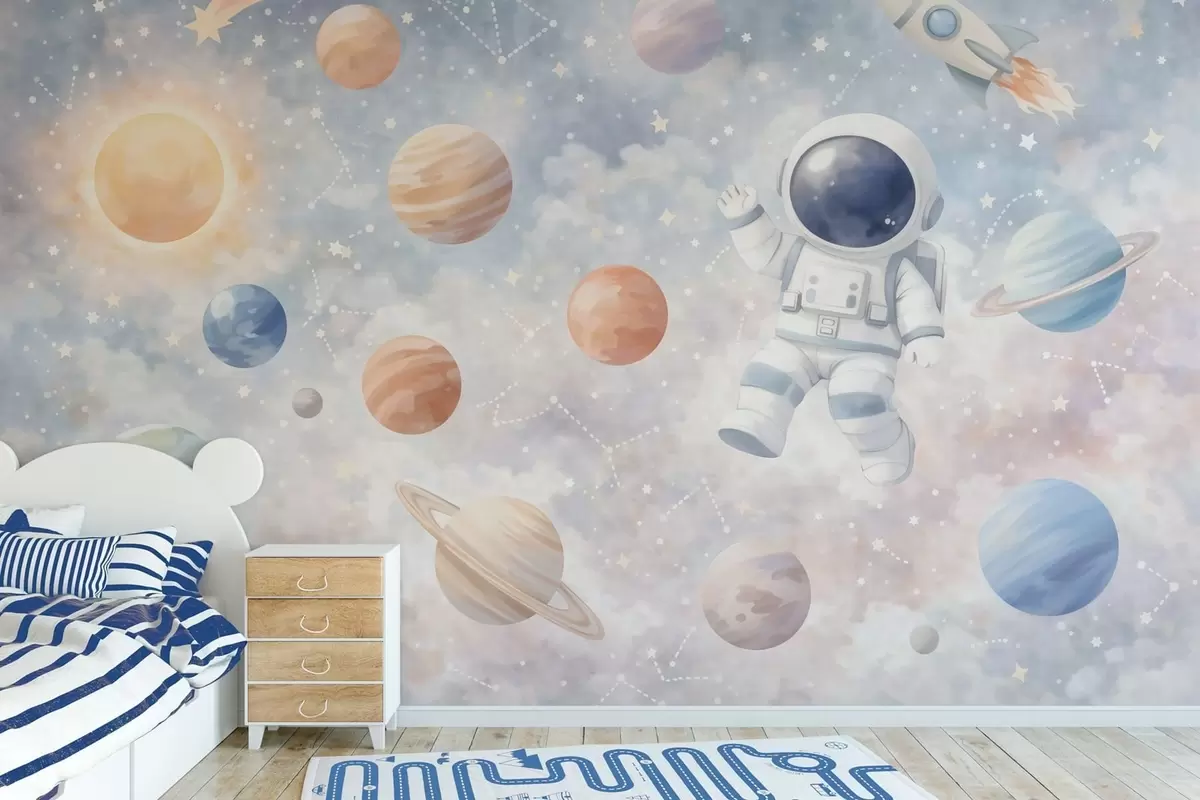 Murais de parede um pequeno astronauta entre planetas e estrelas Nr. w05233