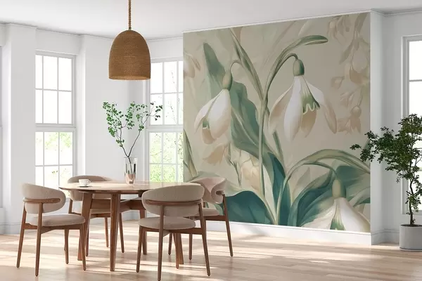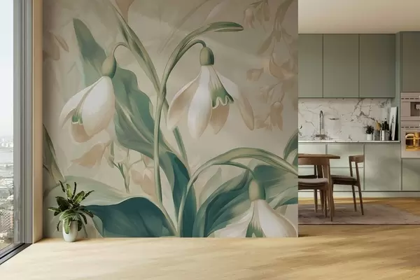 Murais de parede flores de neve a desabrochar sobre um fundo bege Nr. w05234