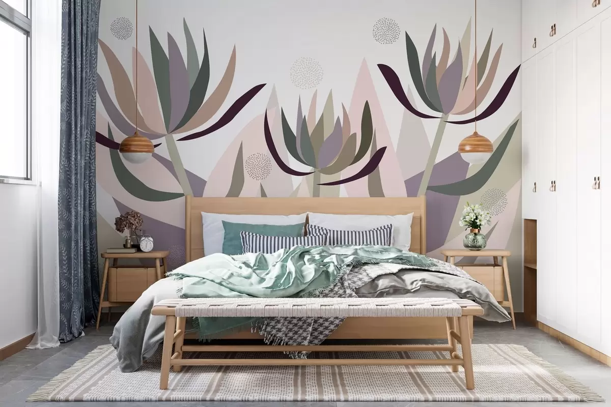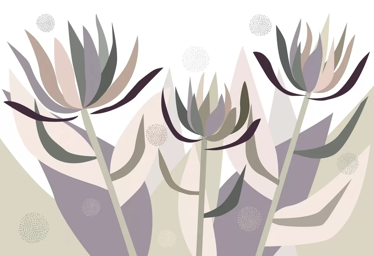 Murais de parede flores de protea estilizadas num estilo primitivo Nr. w05236