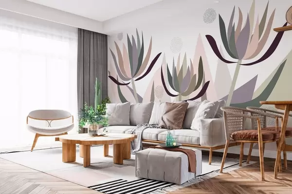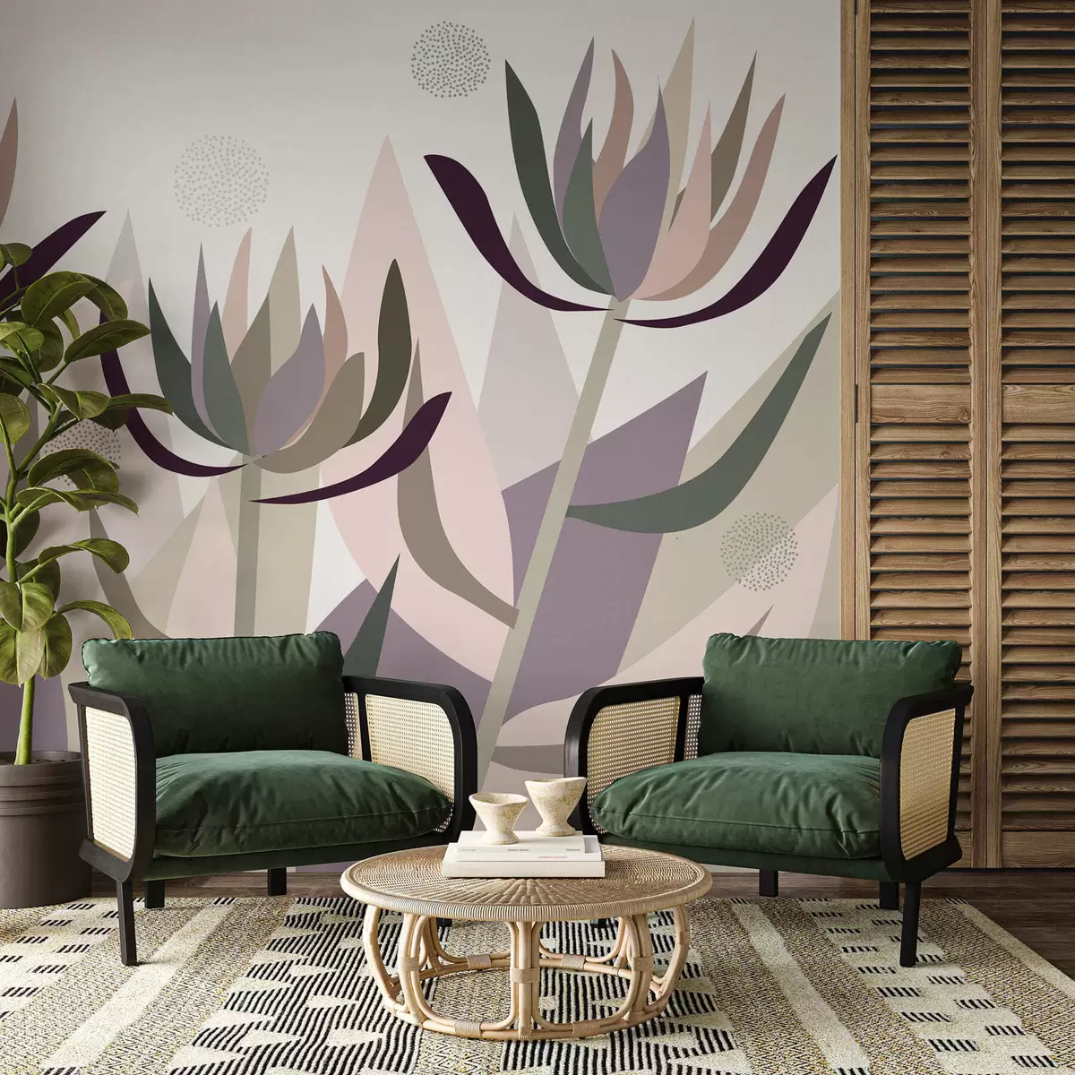 Murais de parede flores de protea estilizadas num estilo primitivo Nr. w05236