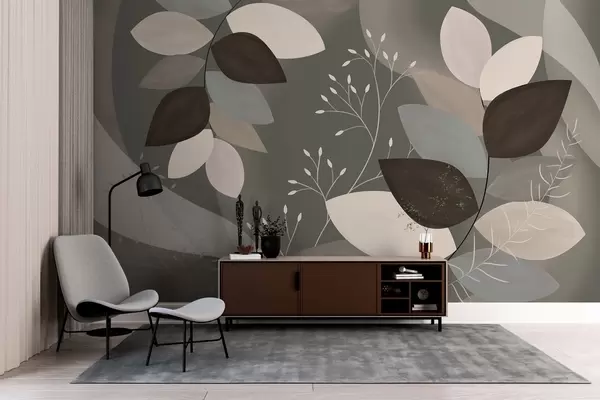 Murais de parede folhas e ervas em tons escuros Nr. w05237v1