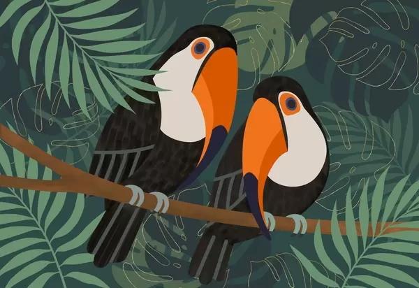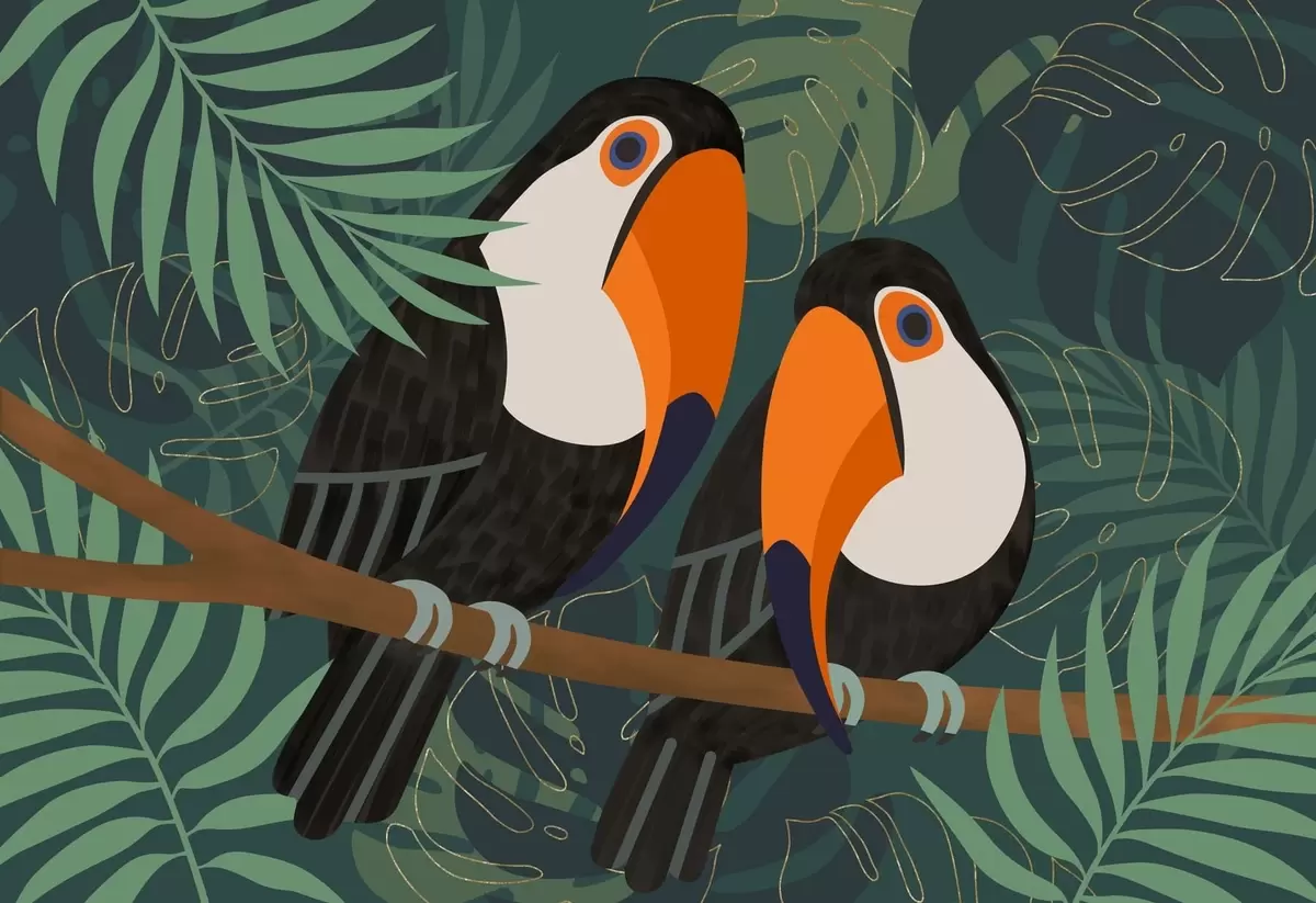 Murais de parede um casal de tucanos num ramo, em estilo afro Nr. w05239