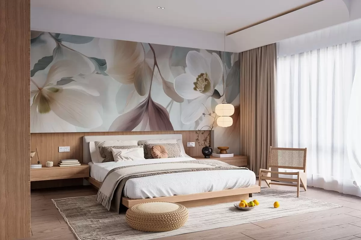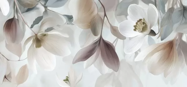 Murais de parede uma delicada composição de flores e folhas em tons pastel Nr. w05240