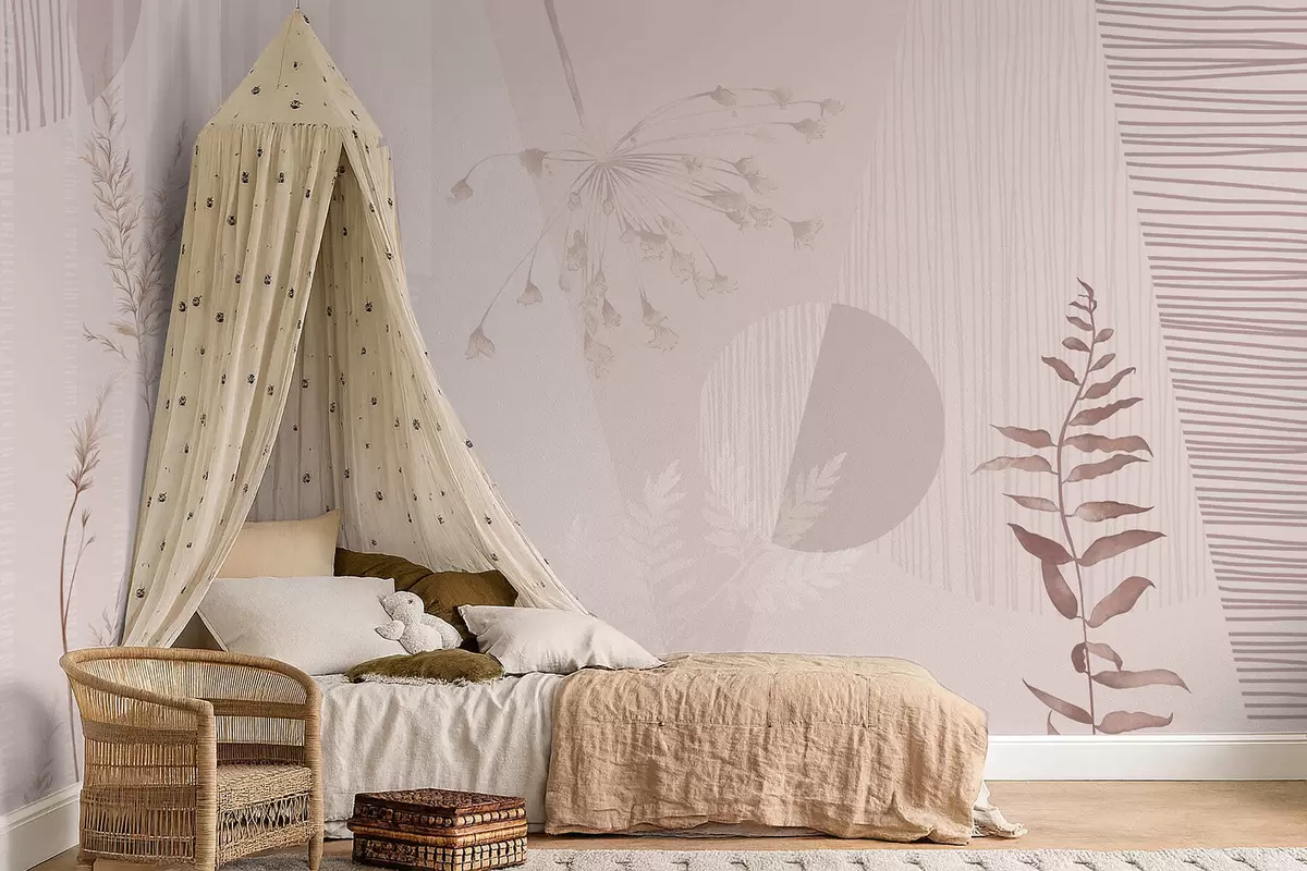 Murais de parede Gramíneas abstratas em tons suaves de rosa Nr. w05318v1