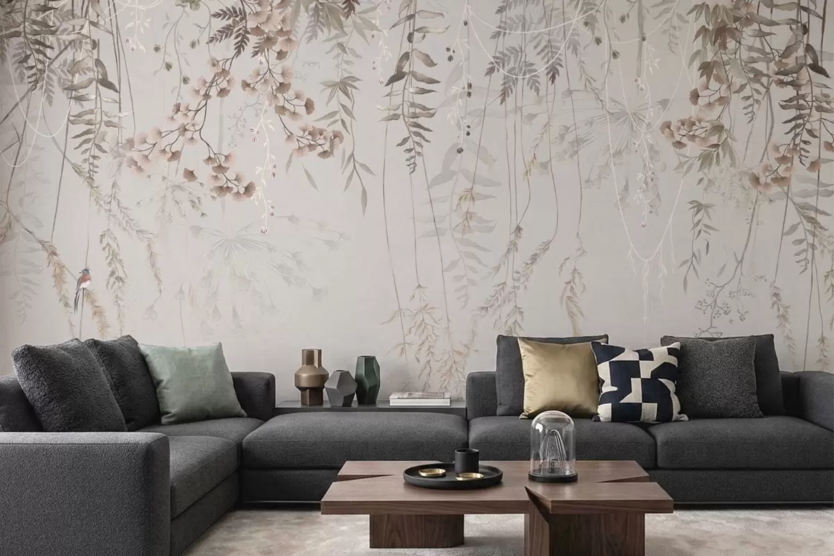 Murais de parede Delicadas ervas pendentes sobre um fundo claro Nr. w05320v2
