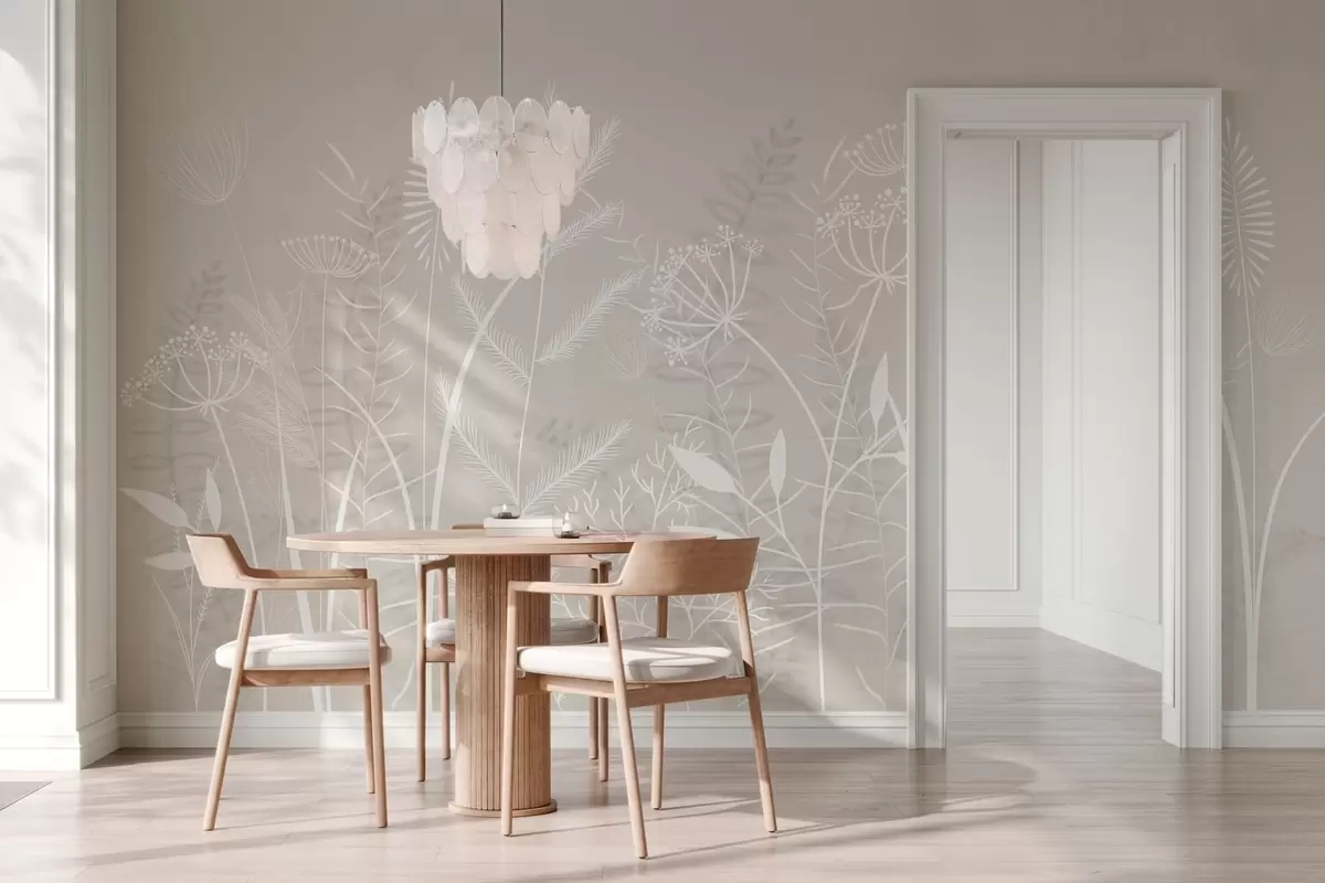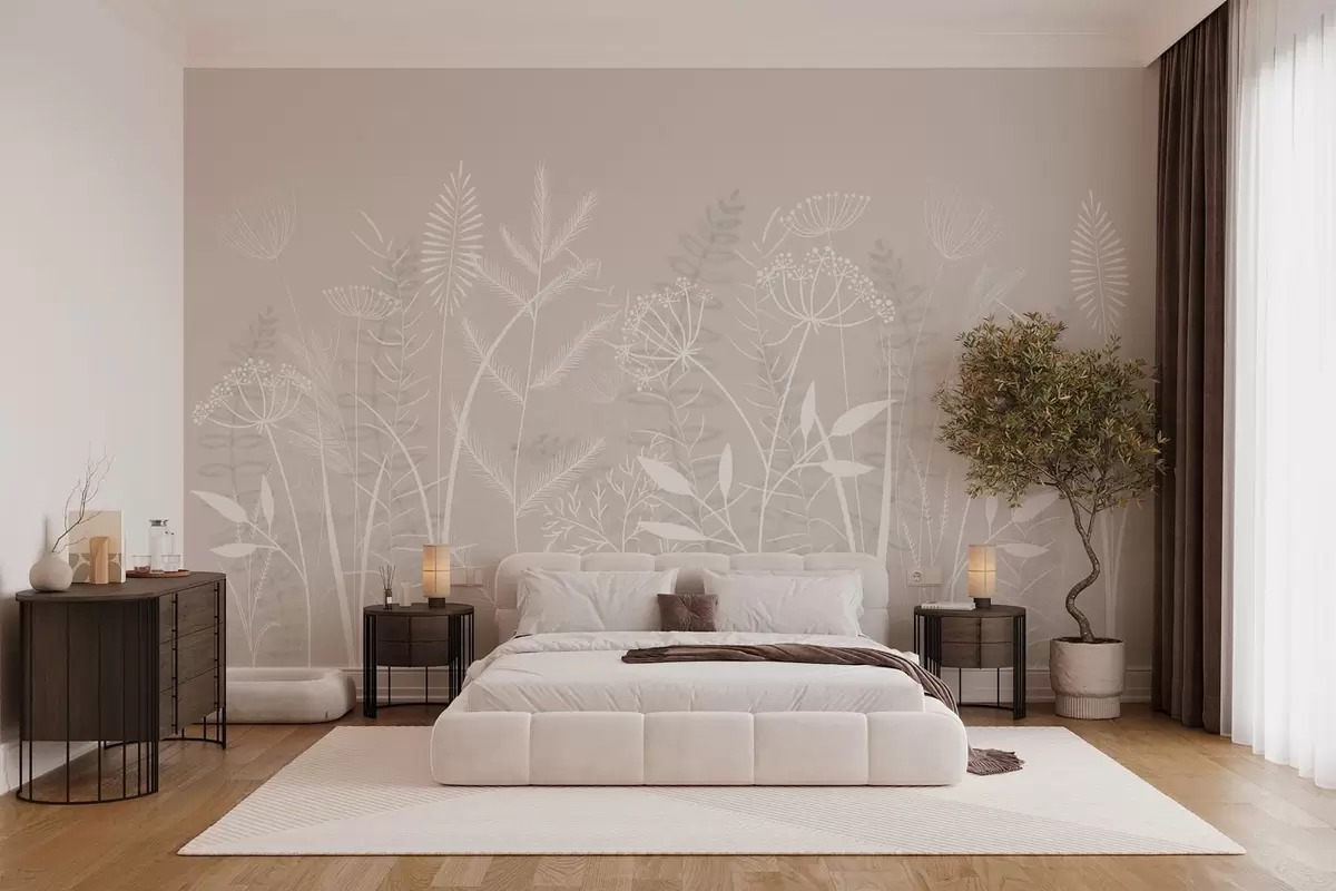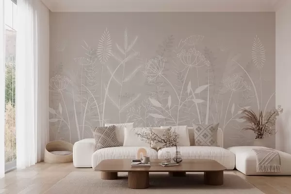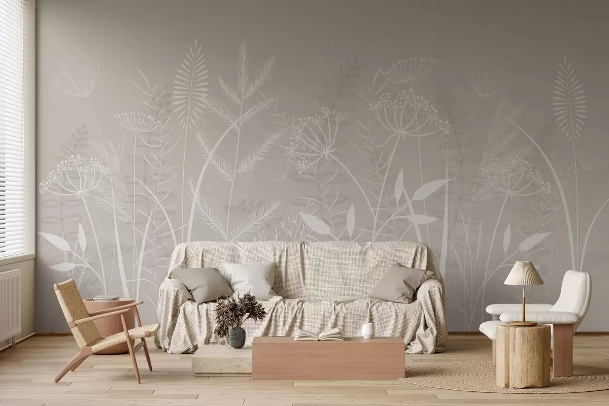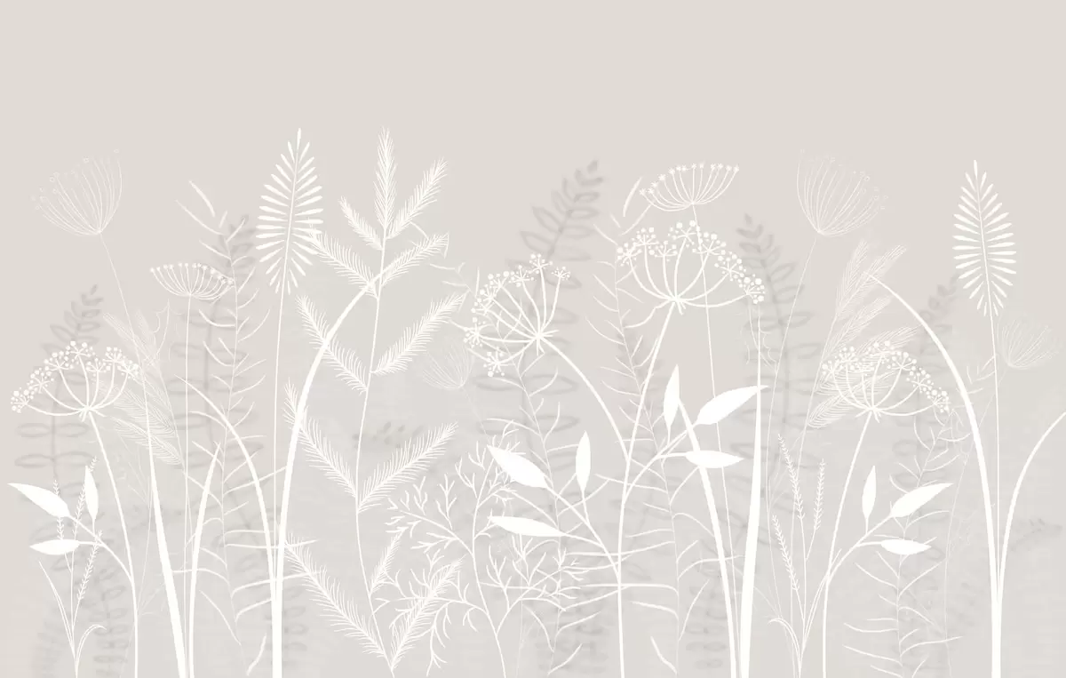 Murais de parede delicadas ervas silvestres e flores pintadas à mão sobre um fundo bege Nr. w05383v1