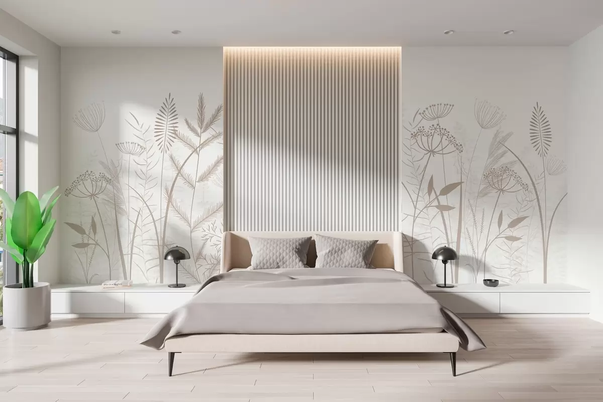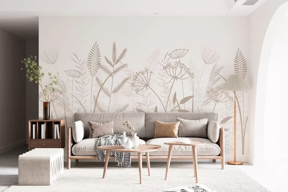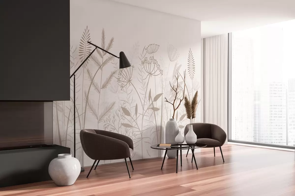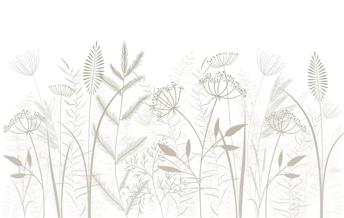 Murais de parede delicadas ervas silvestres e flores pintadas à mão sobre um fundo branco Nr. w05383v2