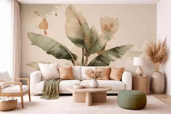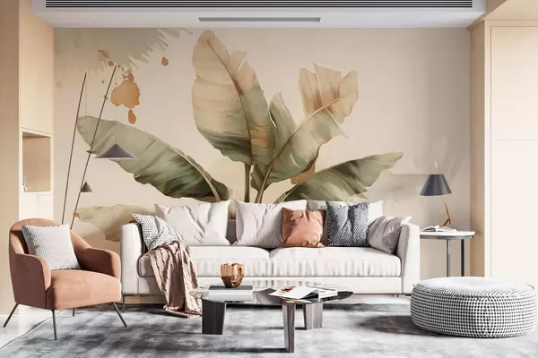 Murais de parede um grande e pitoresco ramo de folhas de bananeira com toques de estilo retro Nr. w05384