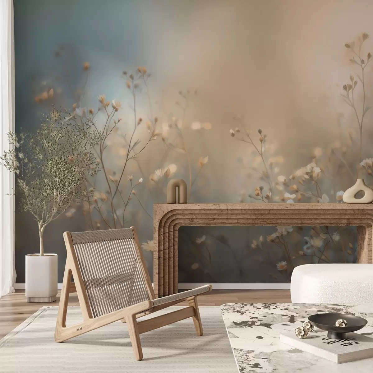 Murais de parede ervas do campo com pequenas flores, com uma profundidade de campo reduzida Nr. w05386