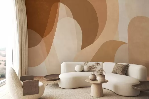 Murais de parede curvas abstratas em tons de castanho, bege e castanho-avermelhado Nr. w05387
