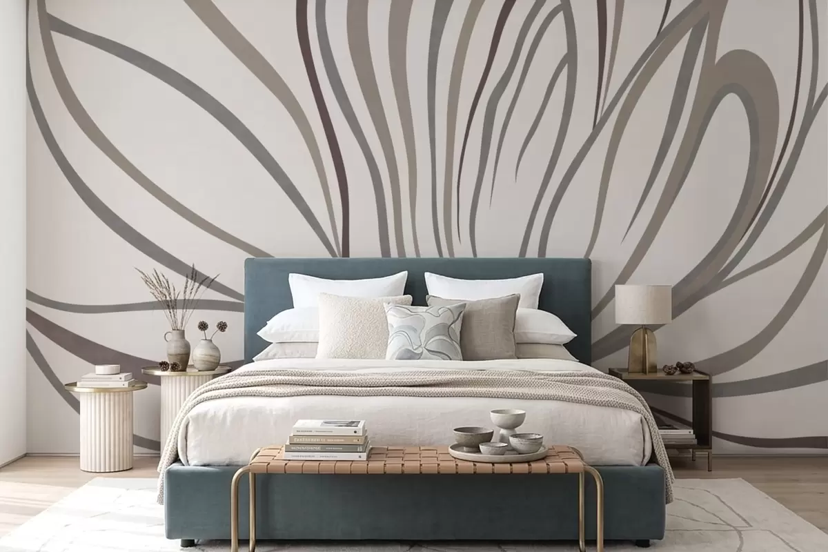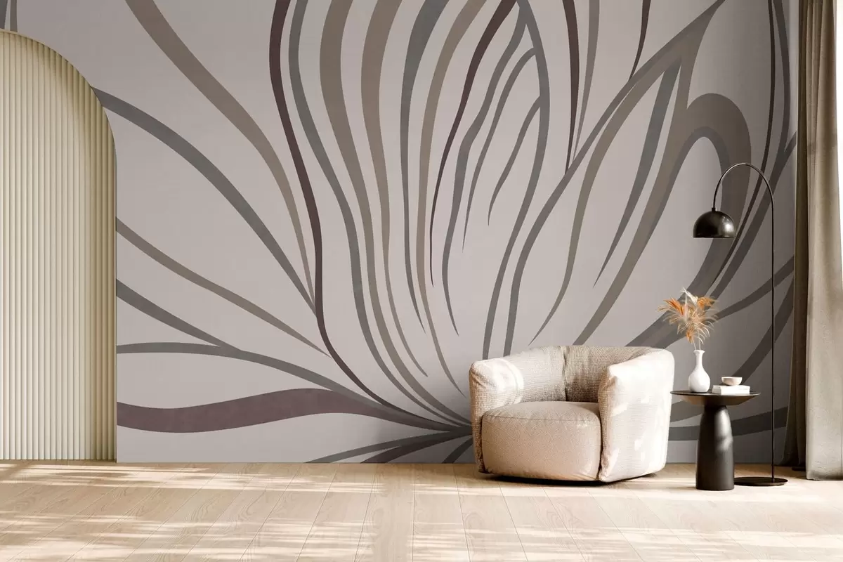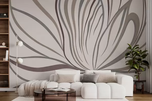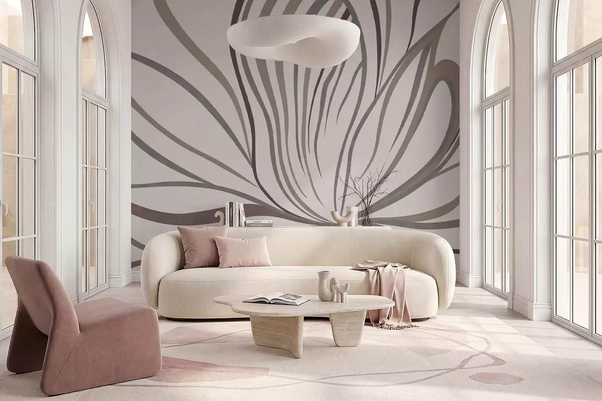 Murais de parede Flor abstrata com linhas em tons de cinzento e rosa Nr. w05392