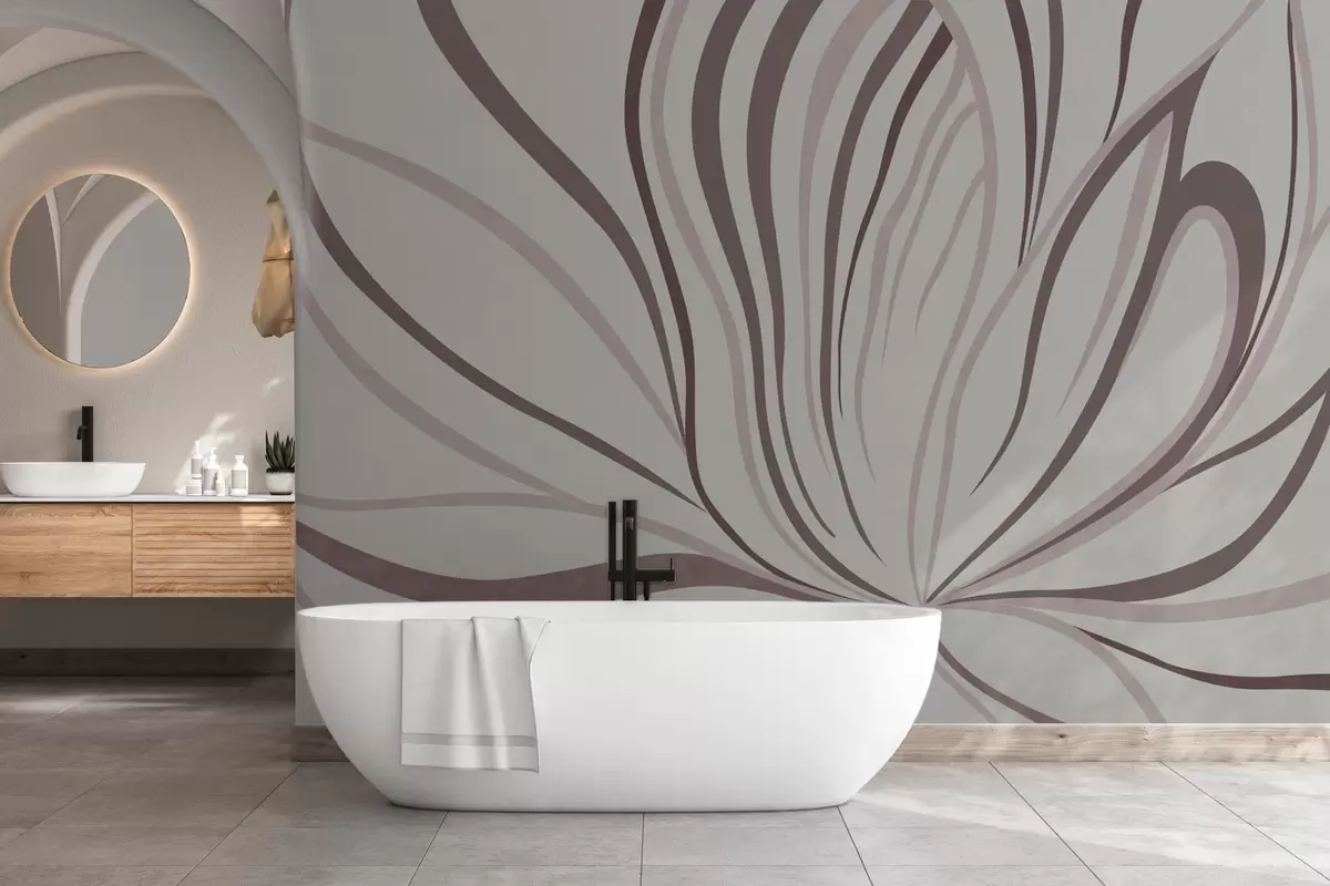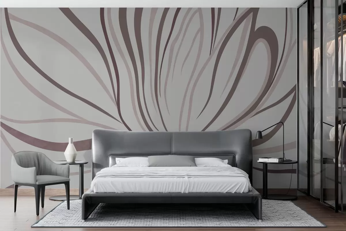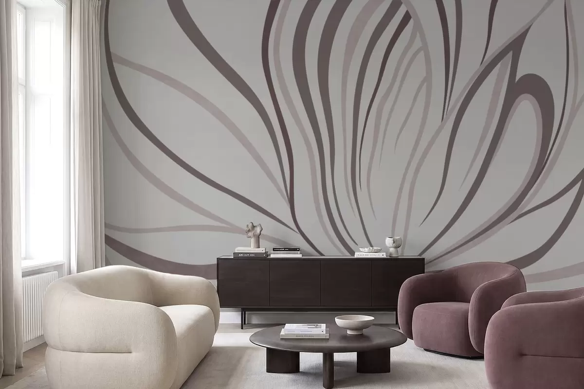 Murais de parede Flor estilizada com linhas suaves em tons de rosa e bege Nr. w05392v1