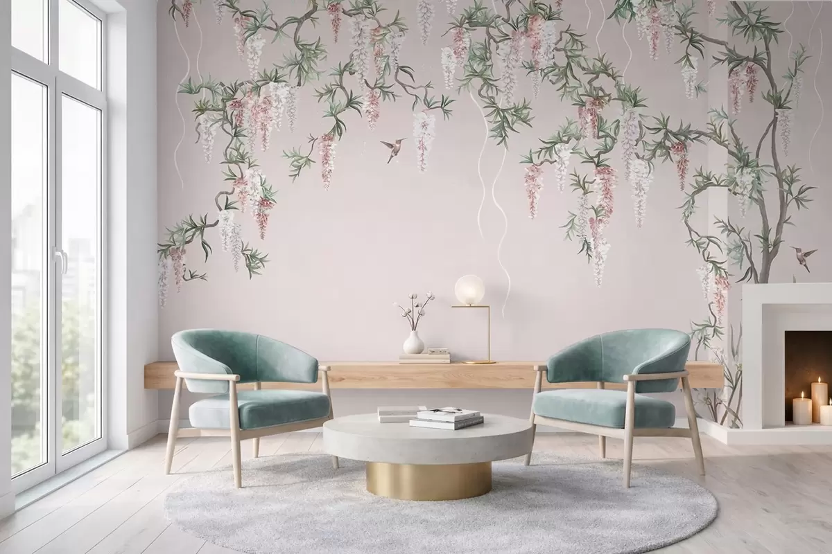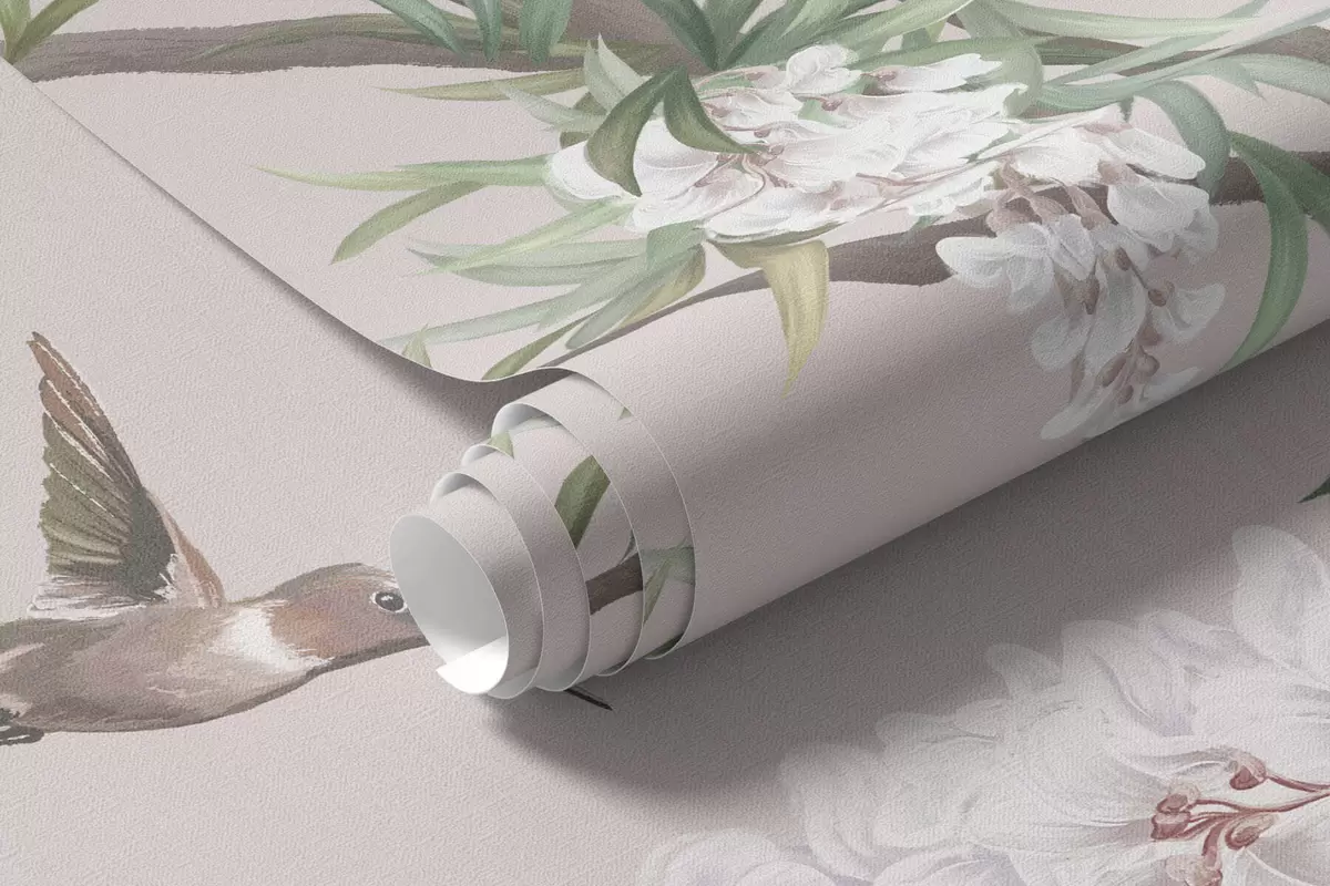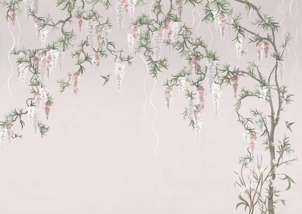 Murais de parede Ramos floridos com flores cor-de-rosa e pássaros Nr. w05394v1