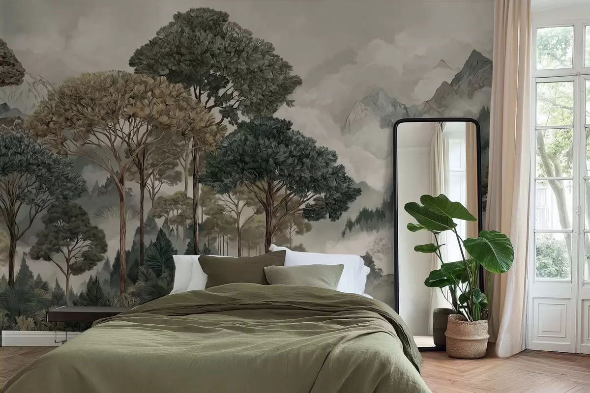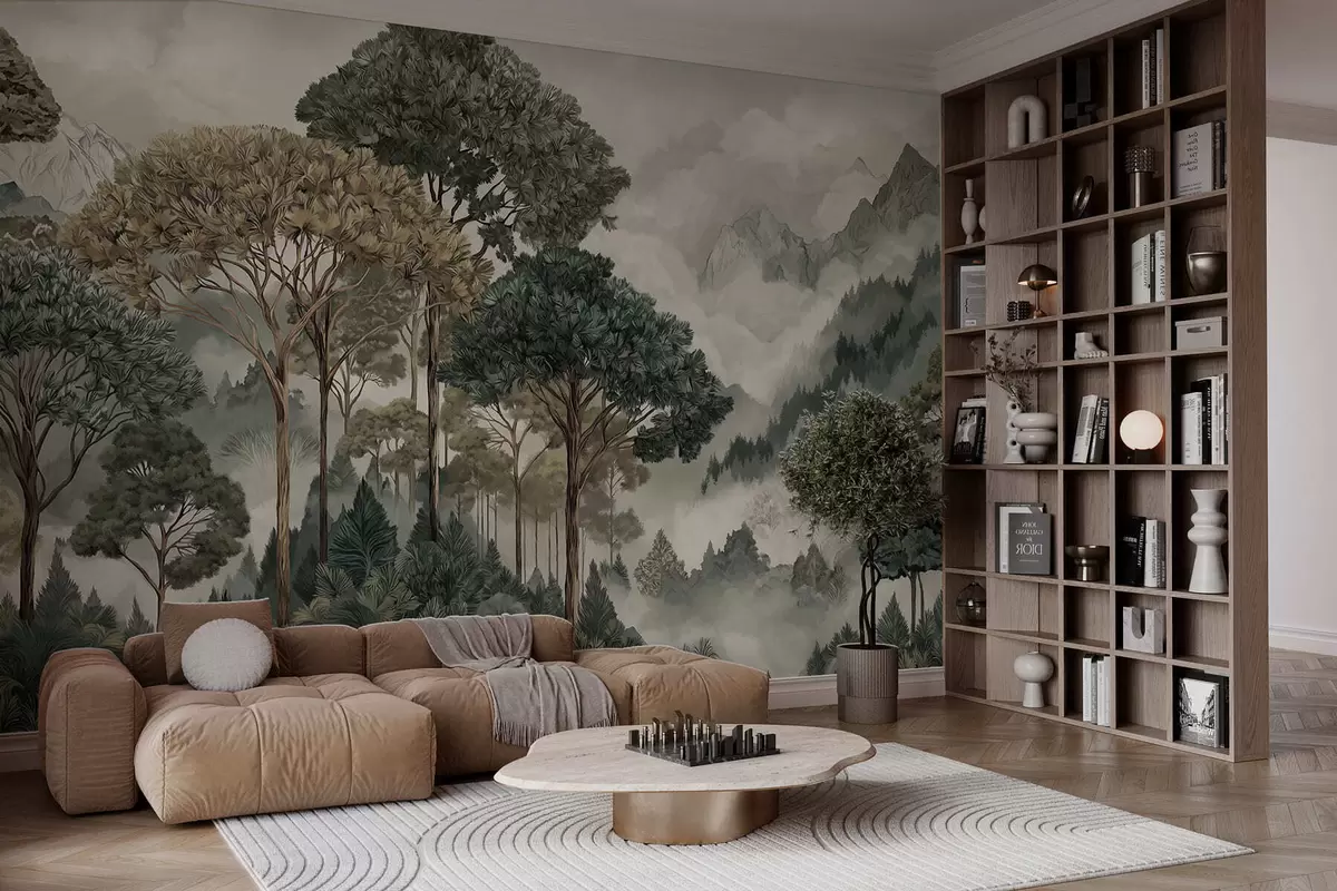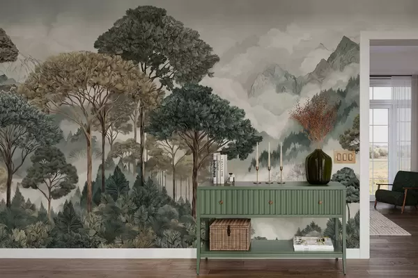 Murais de parede Paisagem montanhosa com floresta em tons suaves Nr. w05410v1