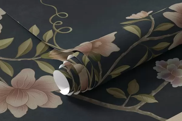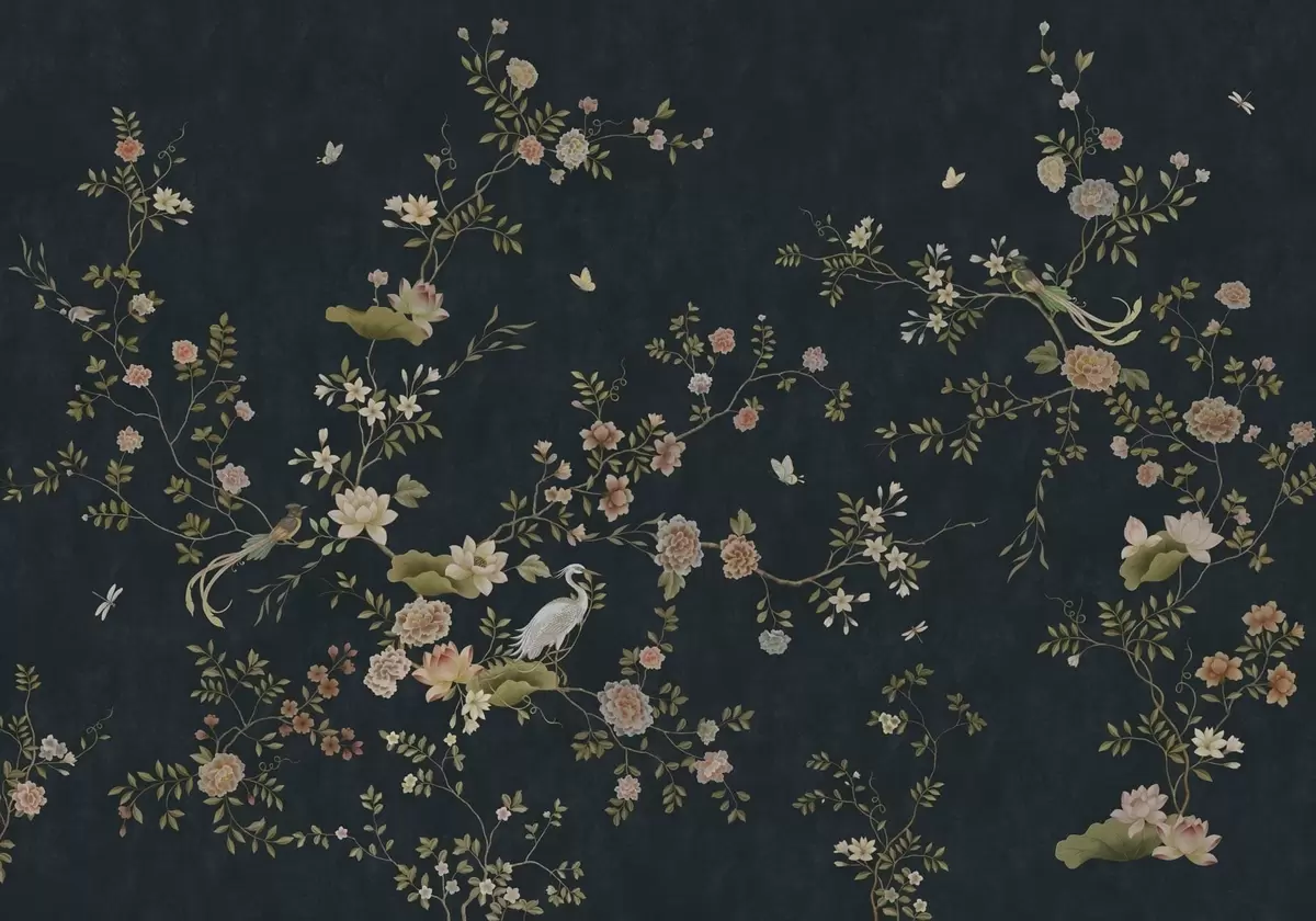 Murais de parede Ramos floridos com pássaros sobre um fundo escuro Nr. w05416v3