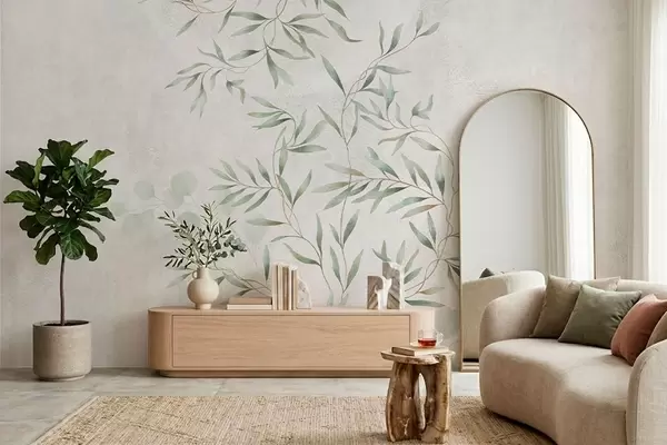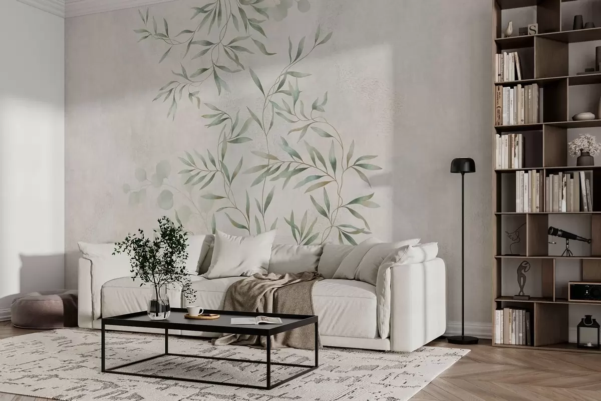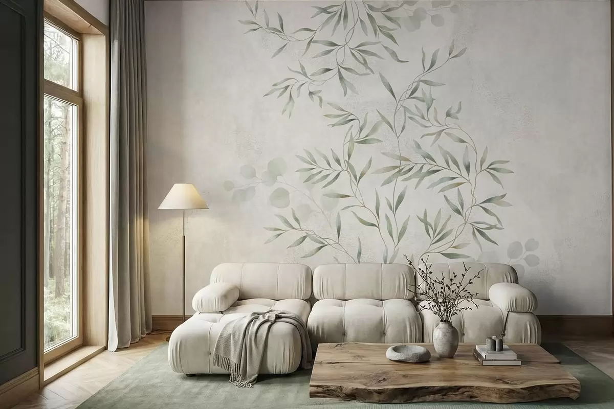 Murais de parede Padrão botânico delicado com ramos finos sobre um fundo claro Nr. w05424