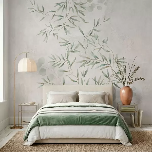Murais de parede Padrão botânico delicado com ramos finos sobre um fundo claro Nr. w05424