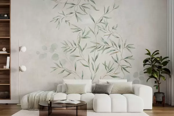 Murais de parede Padrão botânico delicado com ramos finos sobre um fundo claro Nr. w05424