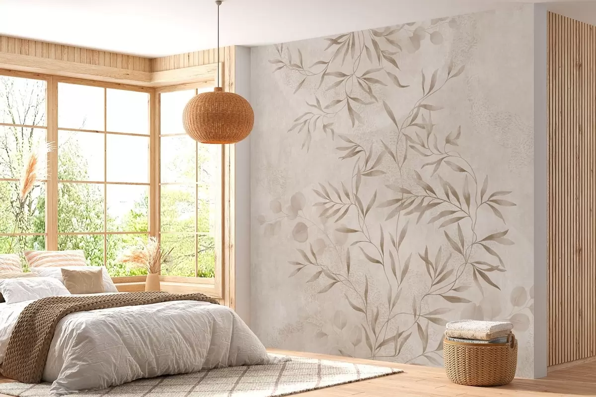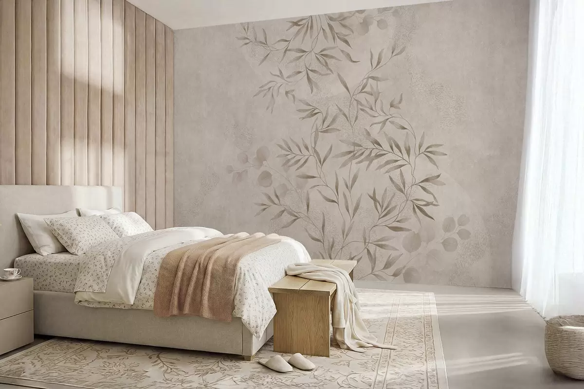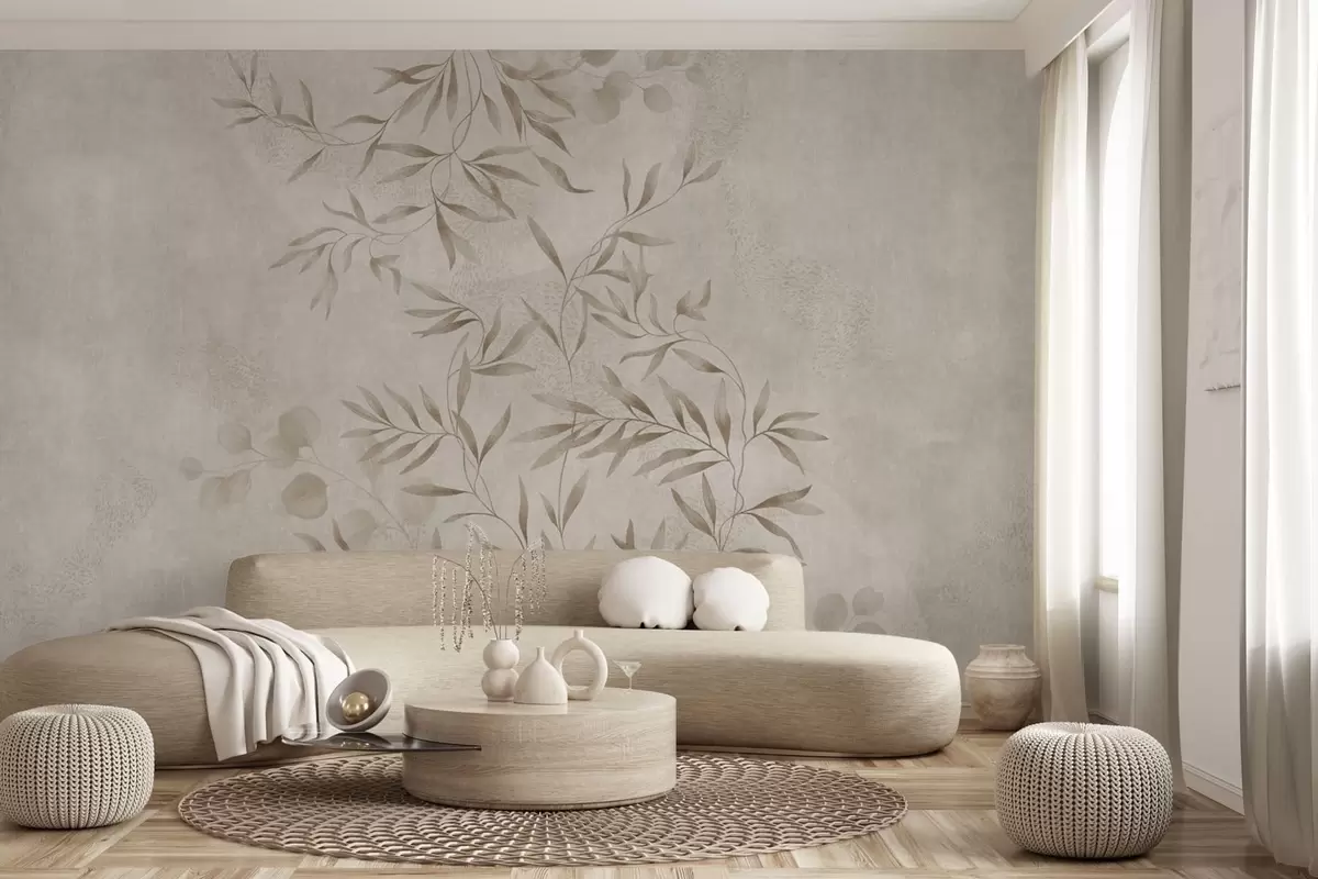 Murais de parede Padrão botânico em tons de bege e castanho Nr. w05424v2