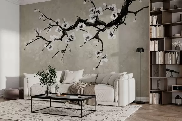 Murais de parede Ramo com flores brancas em estilo minimalista Nr. w05425