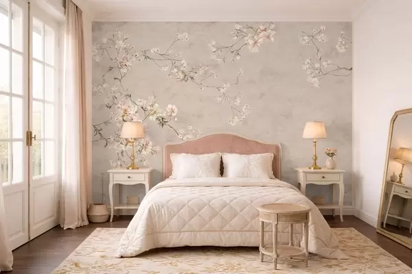 Murais de parede Ramos florais delicados em estilo chinoiserie sobre fundo claro Nr. w05427