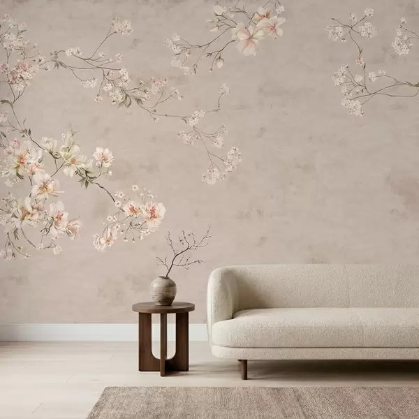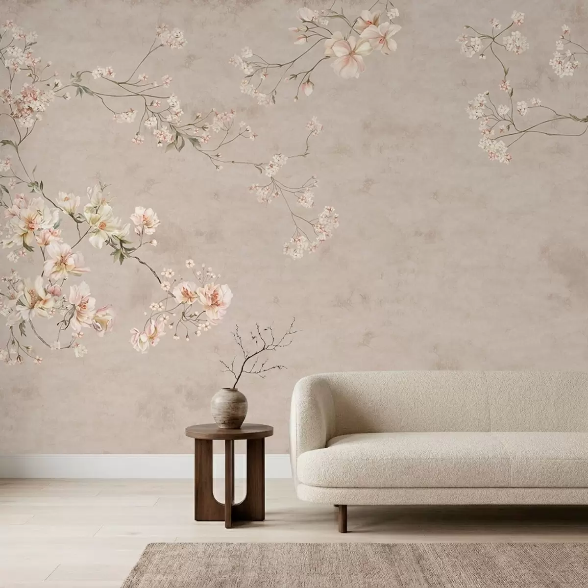 Murais de parede Ramos florais delicados em estilo chinoiserie sobre fundo claro Nr. w05427
