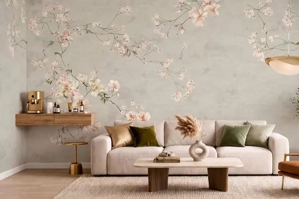 Murais de parede Ramos florais em estilo chinoiserie sobre fundo cinzento Nr. w05427v1