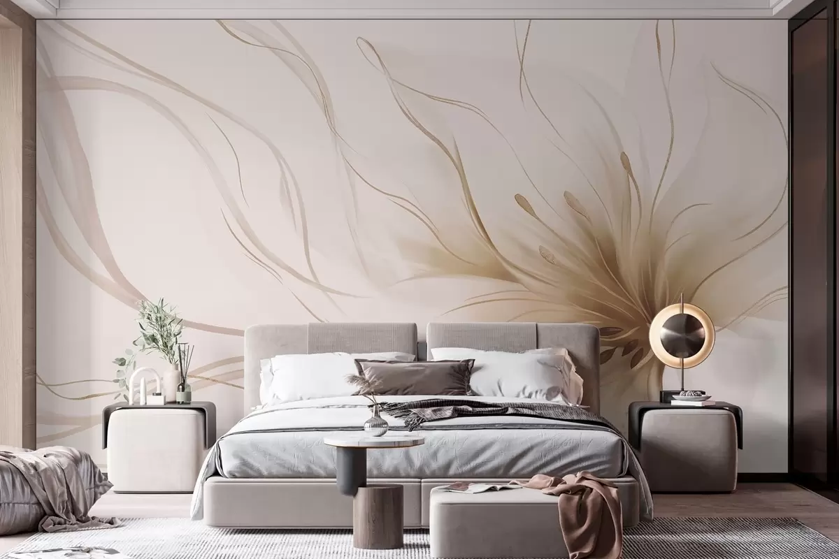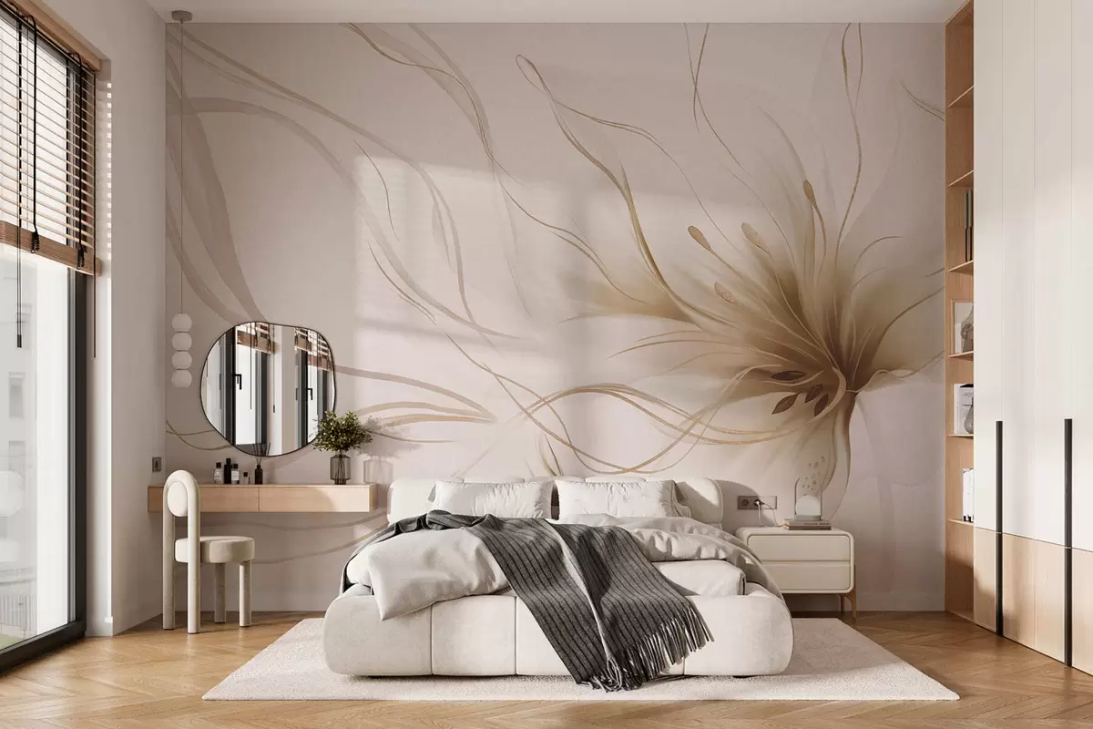 Murais de parede Uma flor abstrata em tons de bege com linhas fluidas, no estilo Fluid Art Nr. w05428v2