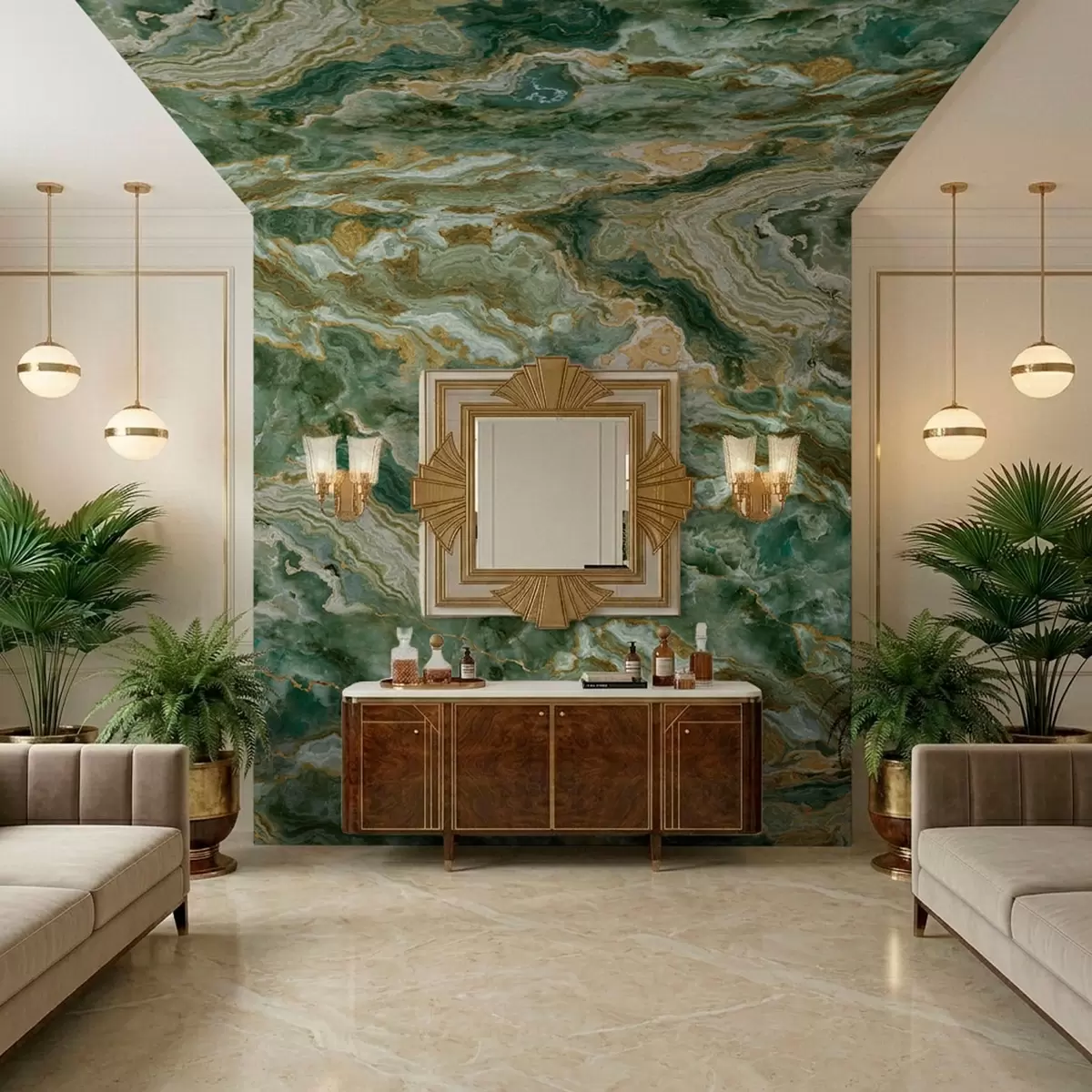 Murais de parede Textura de ônix verde com veios fluidos em camadas Nr. w05429