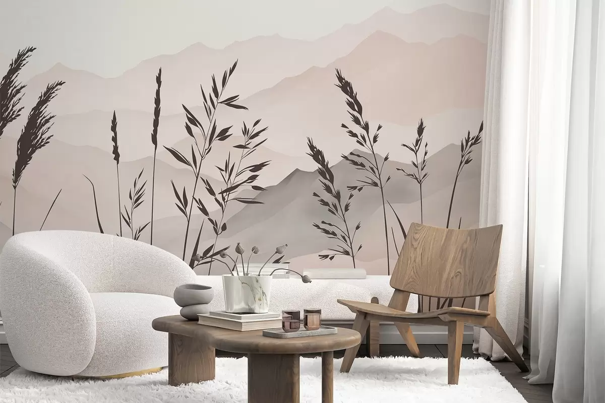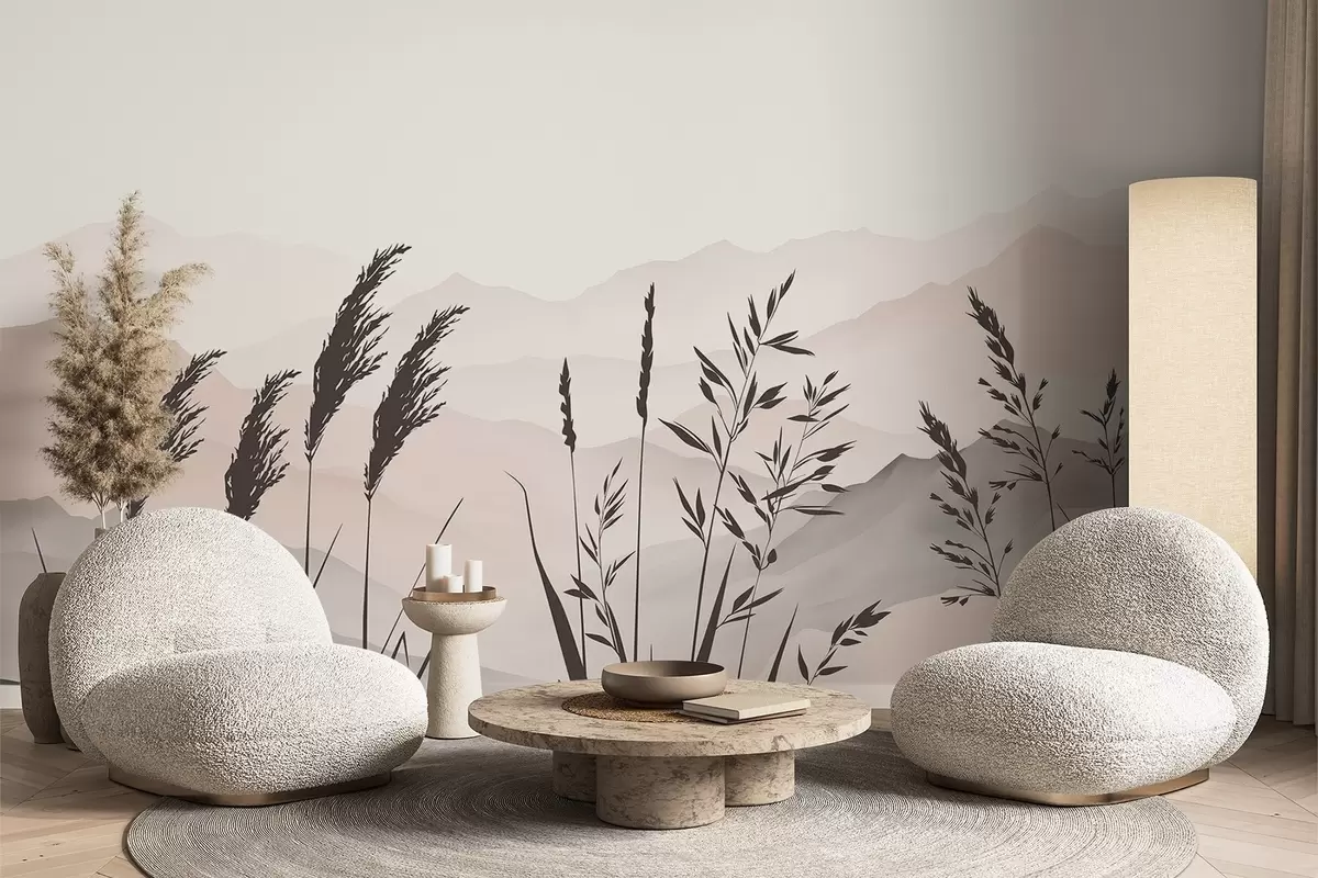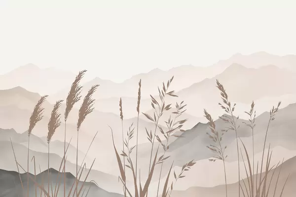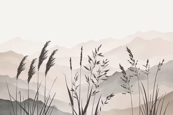 Murais de parede Silhuetas de relva com as montanhas ao fundo Nr. w05501