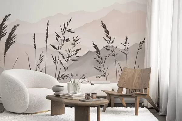 Murais de parede Silhuetas de relva com as montanhas ao fundo Nr. w05501