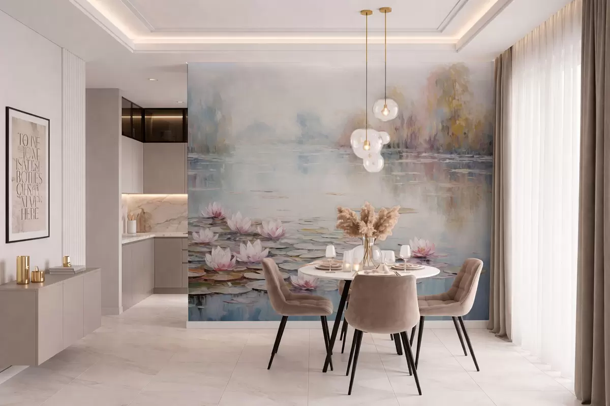 Murais de parede Lago impressionista com nenúfares e luz suave Nr. w05515