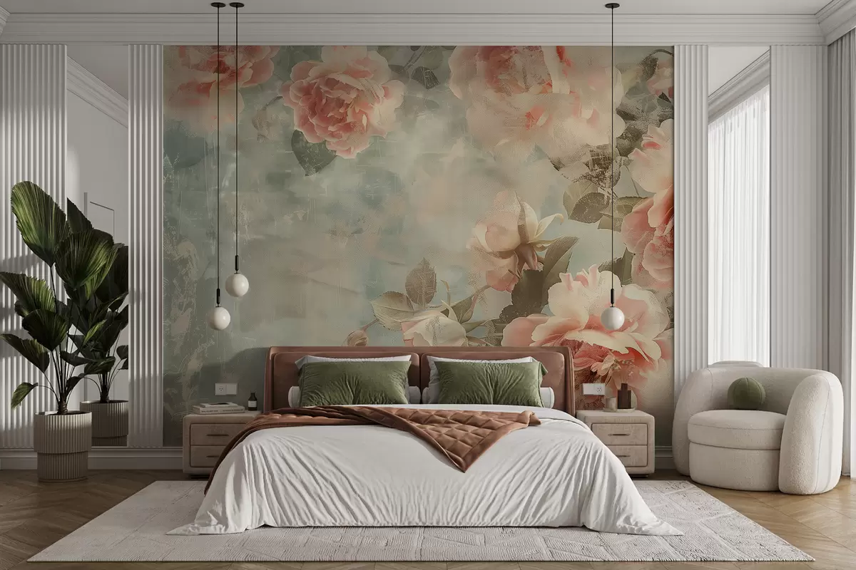 Murais de parede Fundo esfumaçado com flores delicadas Nr. w07941
