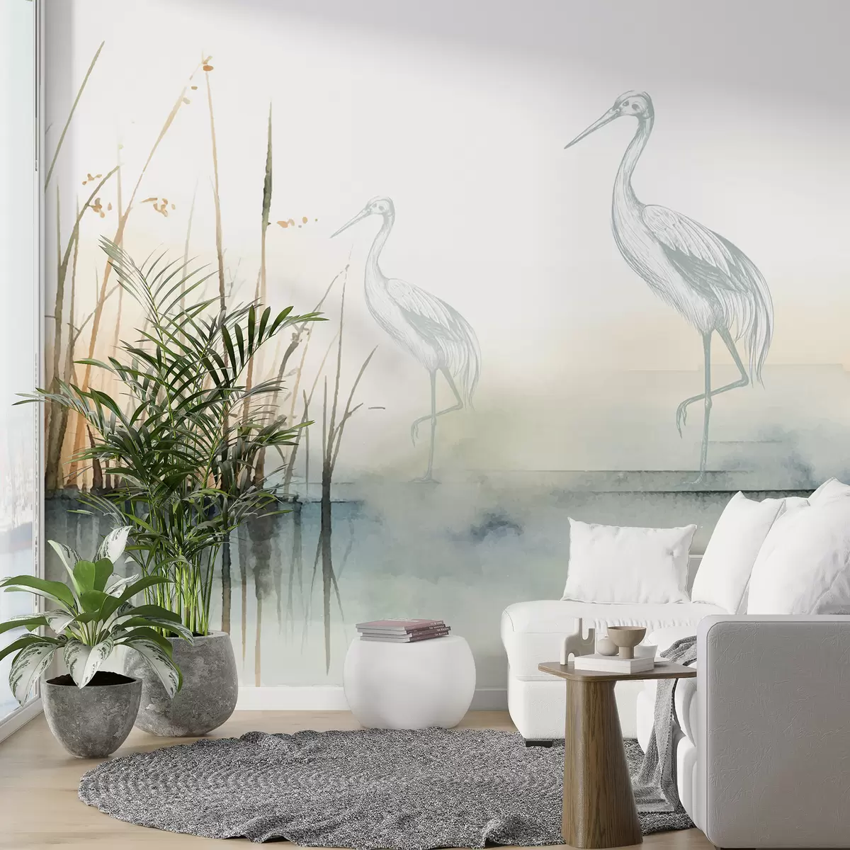 Murais de parede Juncos e garças em aquarela Nr. w08078