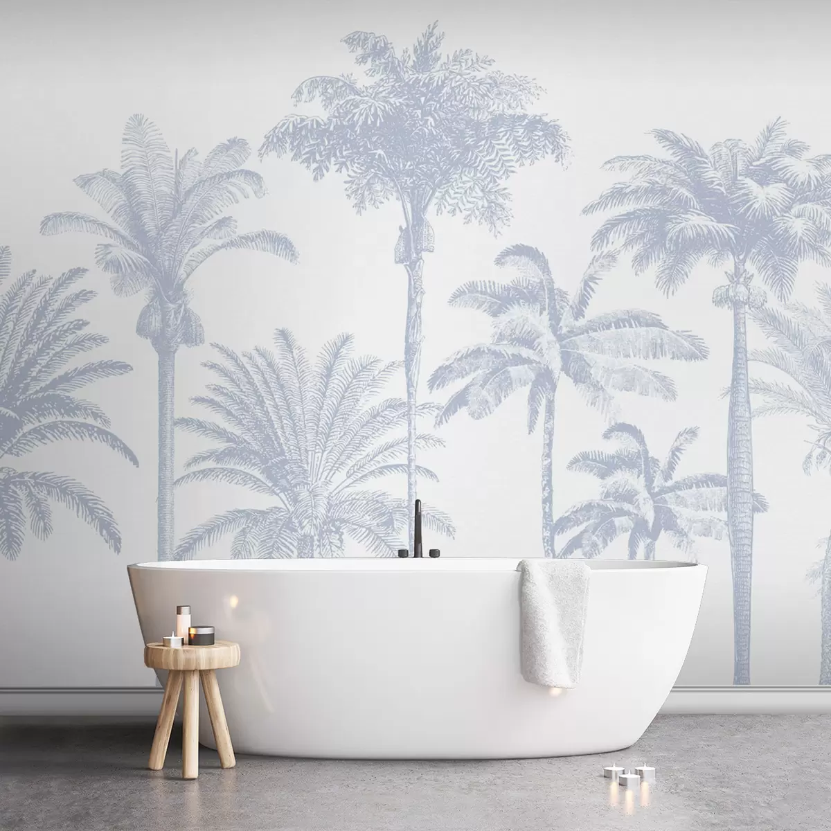 Murais de parede Oásis de palmeiras tropicais cor azul mínima Nr. w08111v4