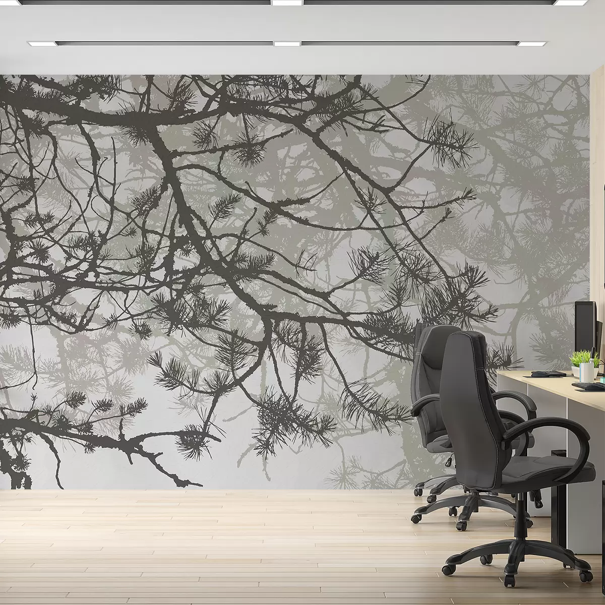 Murais de parede galhos de uma grande árvore em tons de cinza Nr. w08166